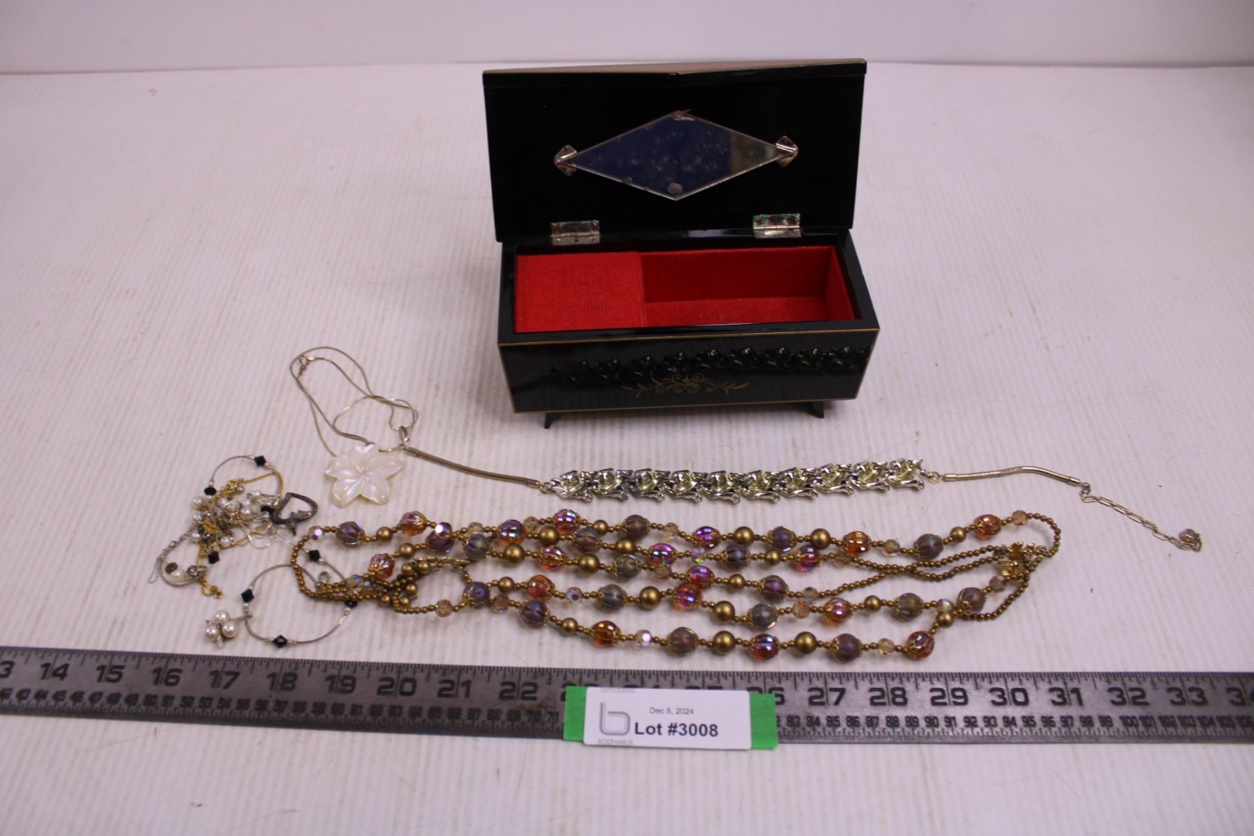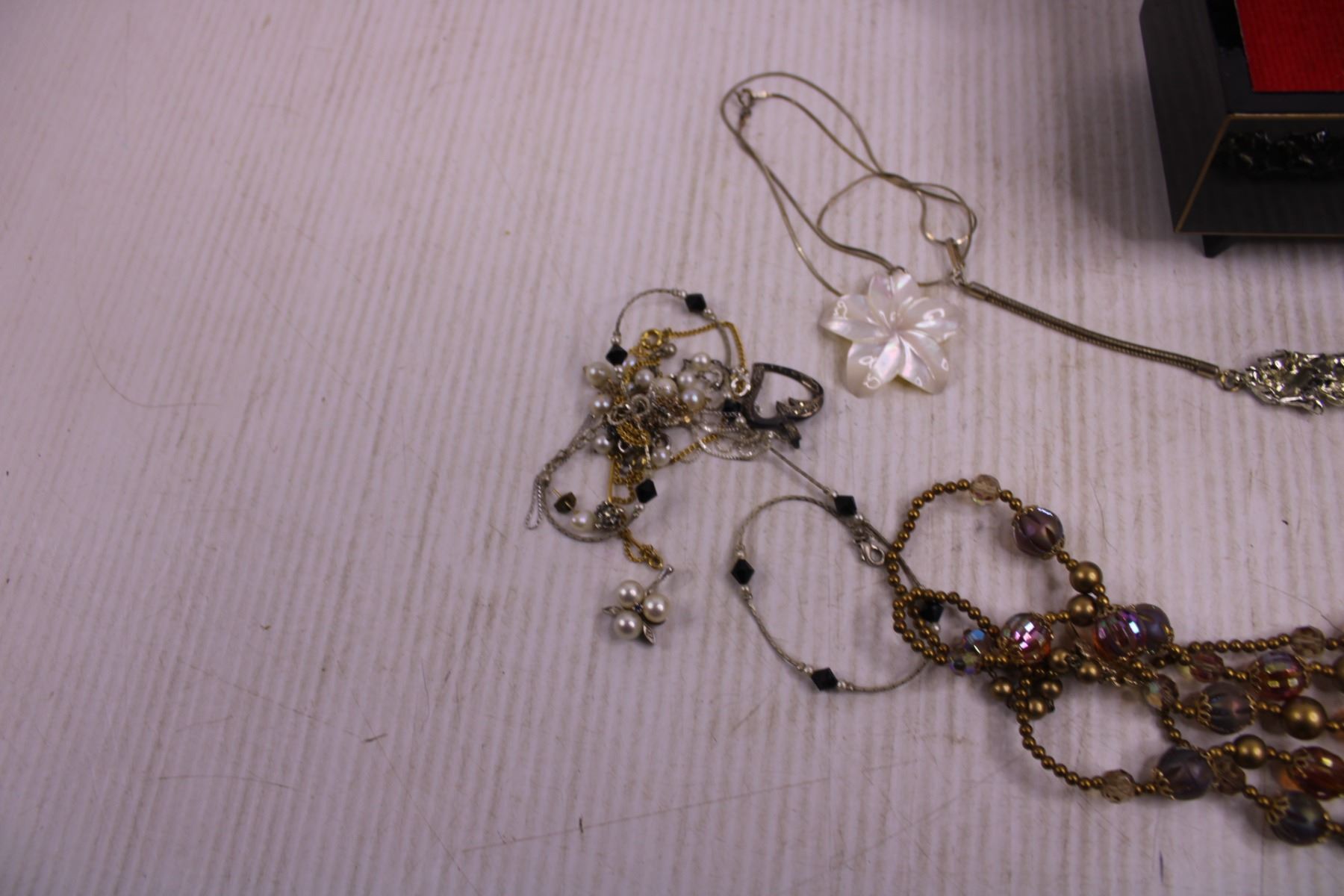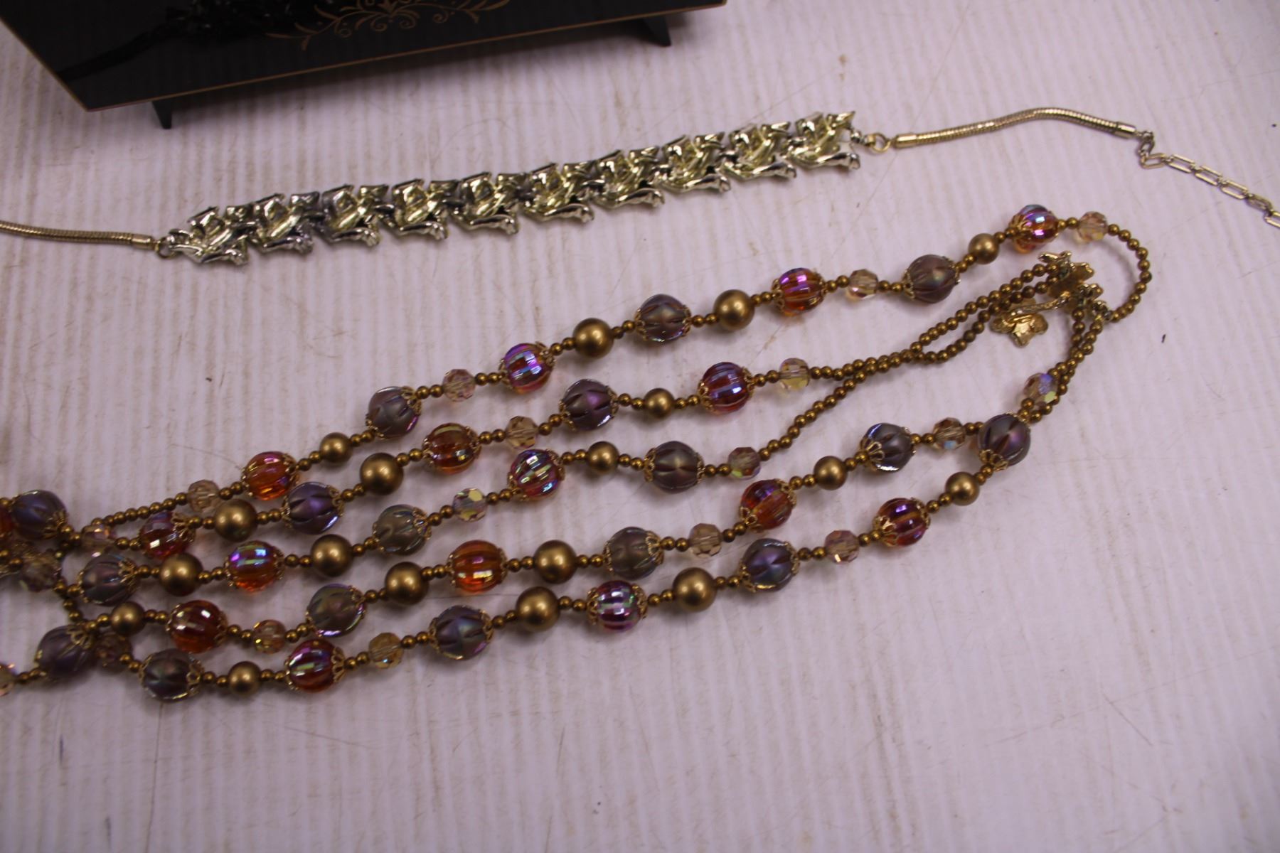 Vintage Wind-Up Musical Jewelry Box With Contents (Necklaces)
