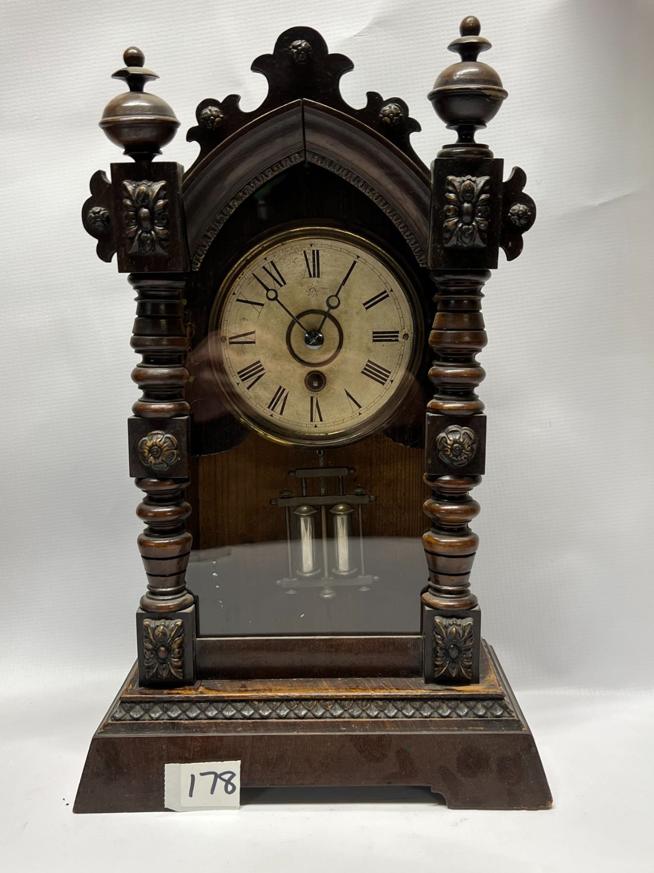 Vintage Wind up Mantle Clock w/key Approx: 16.5x10.25"