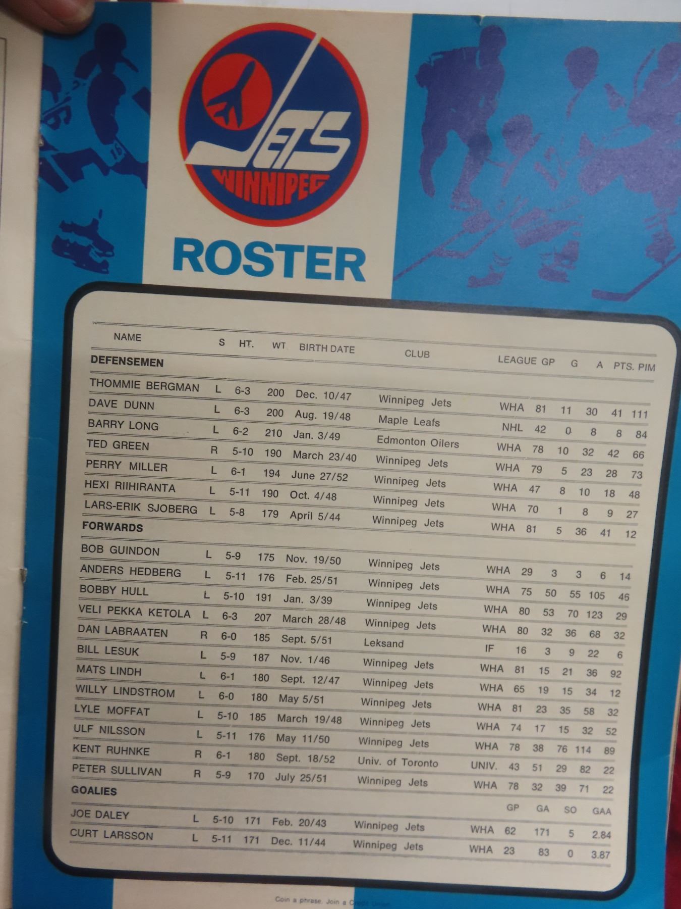 Vintage Winnipeg Jets WHA Program, Autographed by Bobby Hull, Anders Hedberg, and Ulf Nilsson
