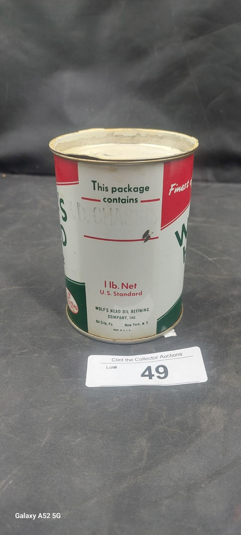 Vintage Wolfs head lube 1lb can very nice conditiion partially full