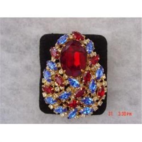 <tr><td>Title:Vintage Wonderful Red White and Blue Rhinestone Brooch</td></tr>
