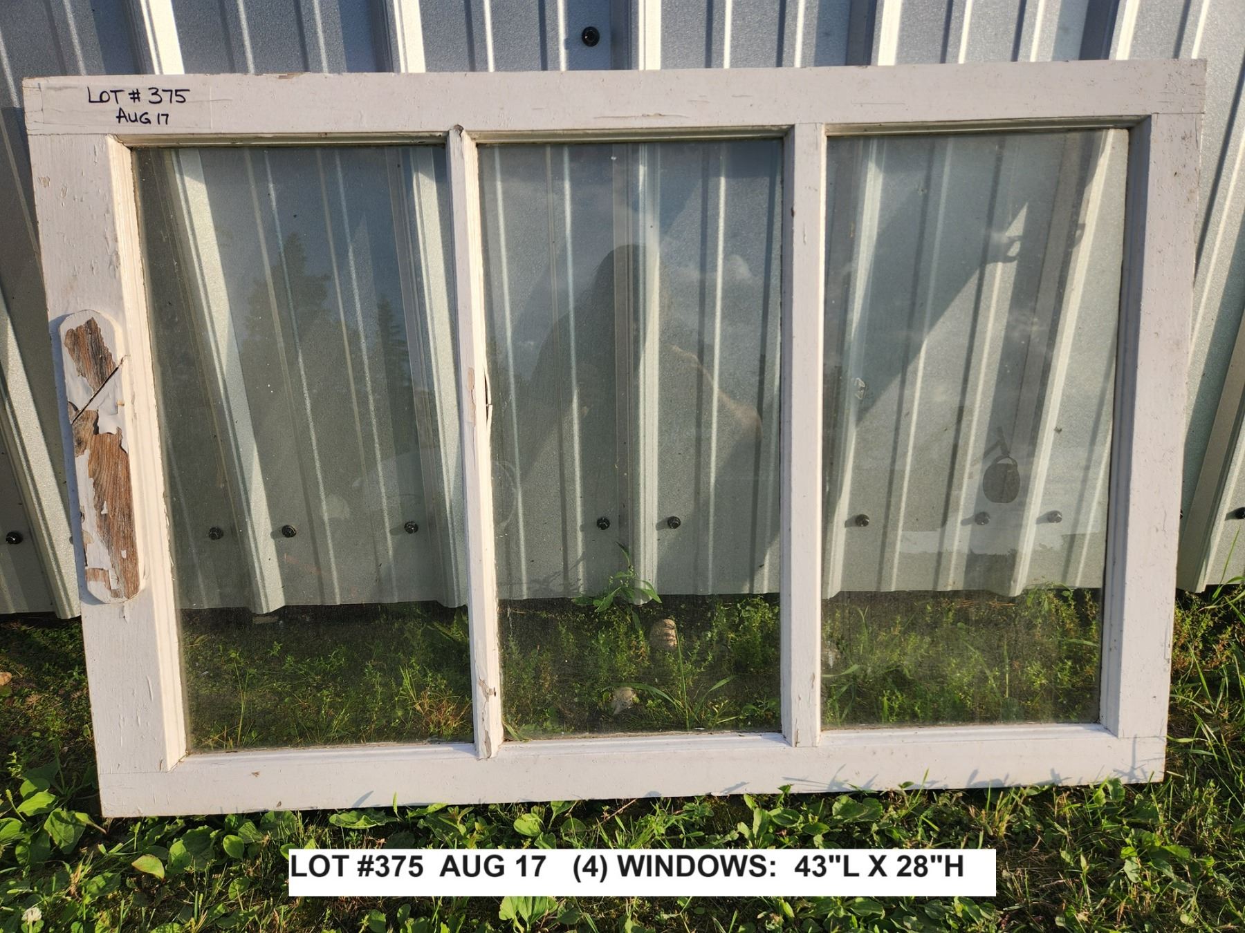 (4) Large windows are all the same. 43" long x 28" high. (1) Small window is 29" long x 24" high.