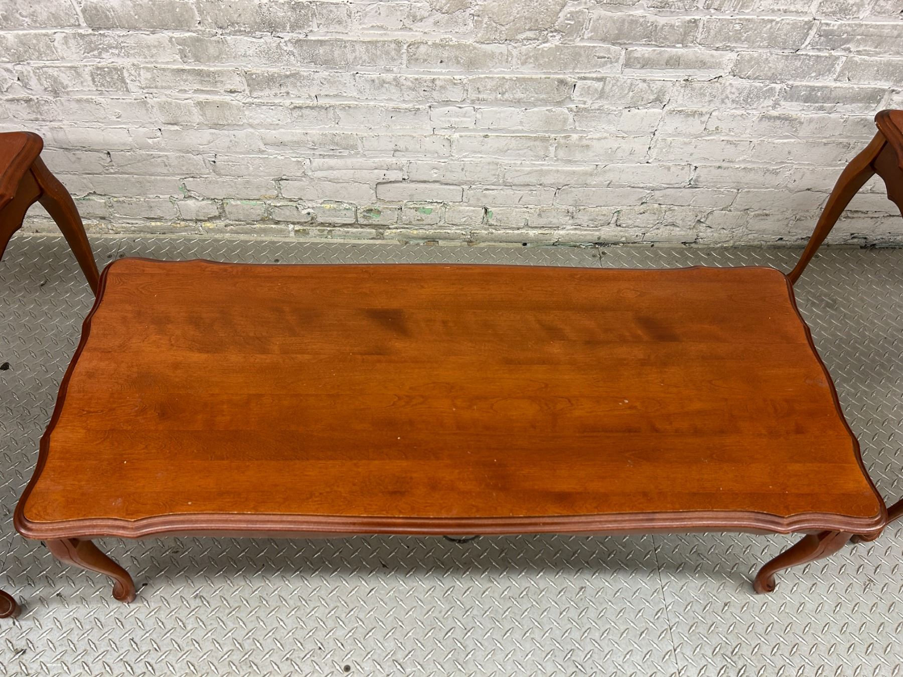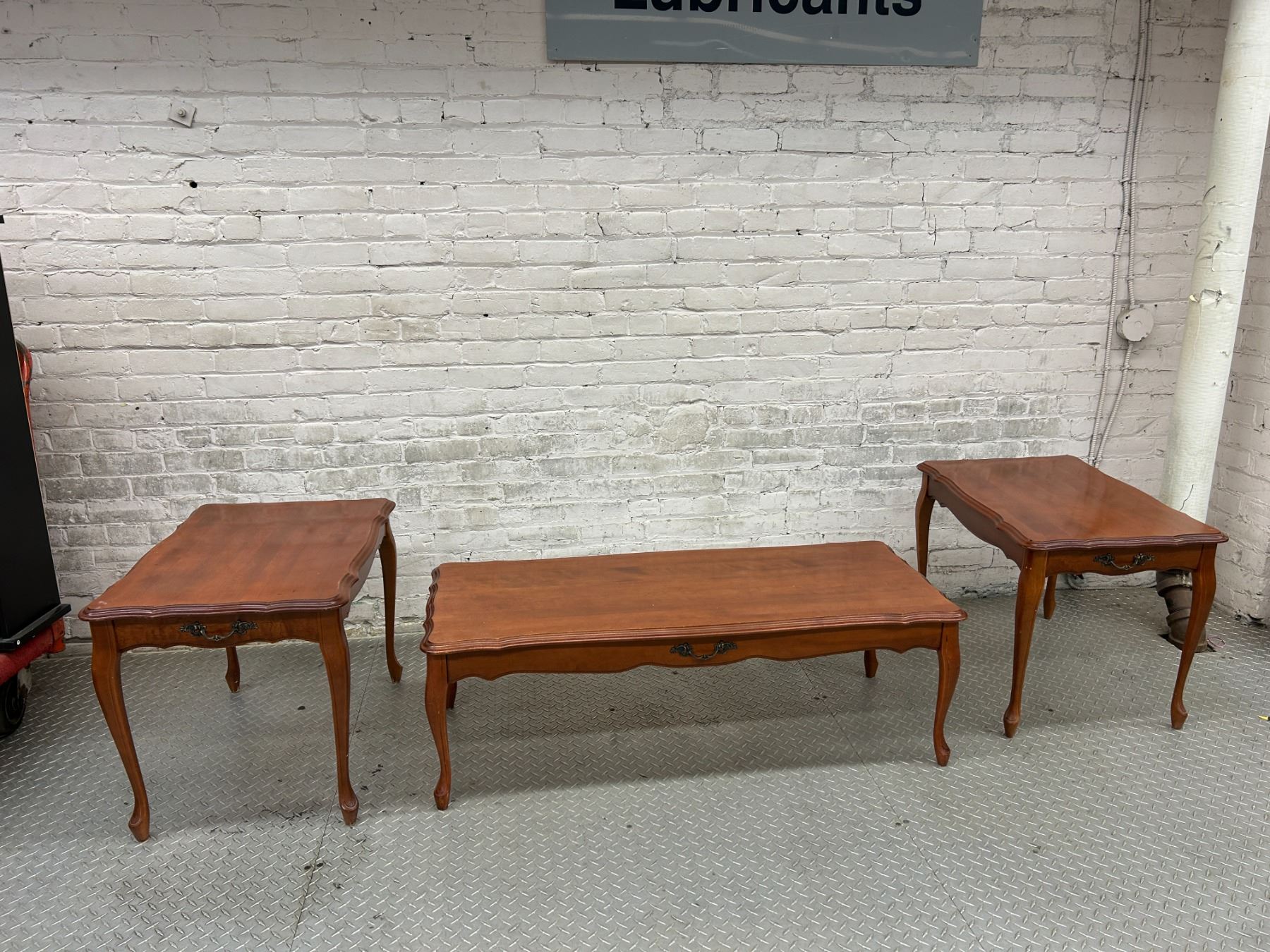 Coffee table is 4ft x 19" x 15" and Side Tables are 27" x 20" x 21"