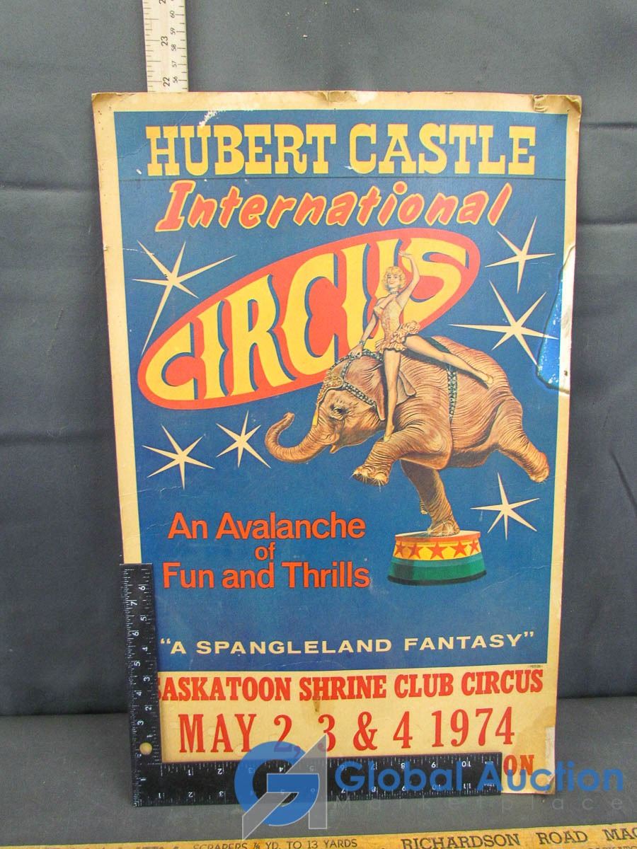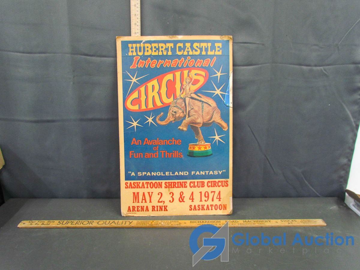 Vintage Wooden Meter Stick and Circus Poster