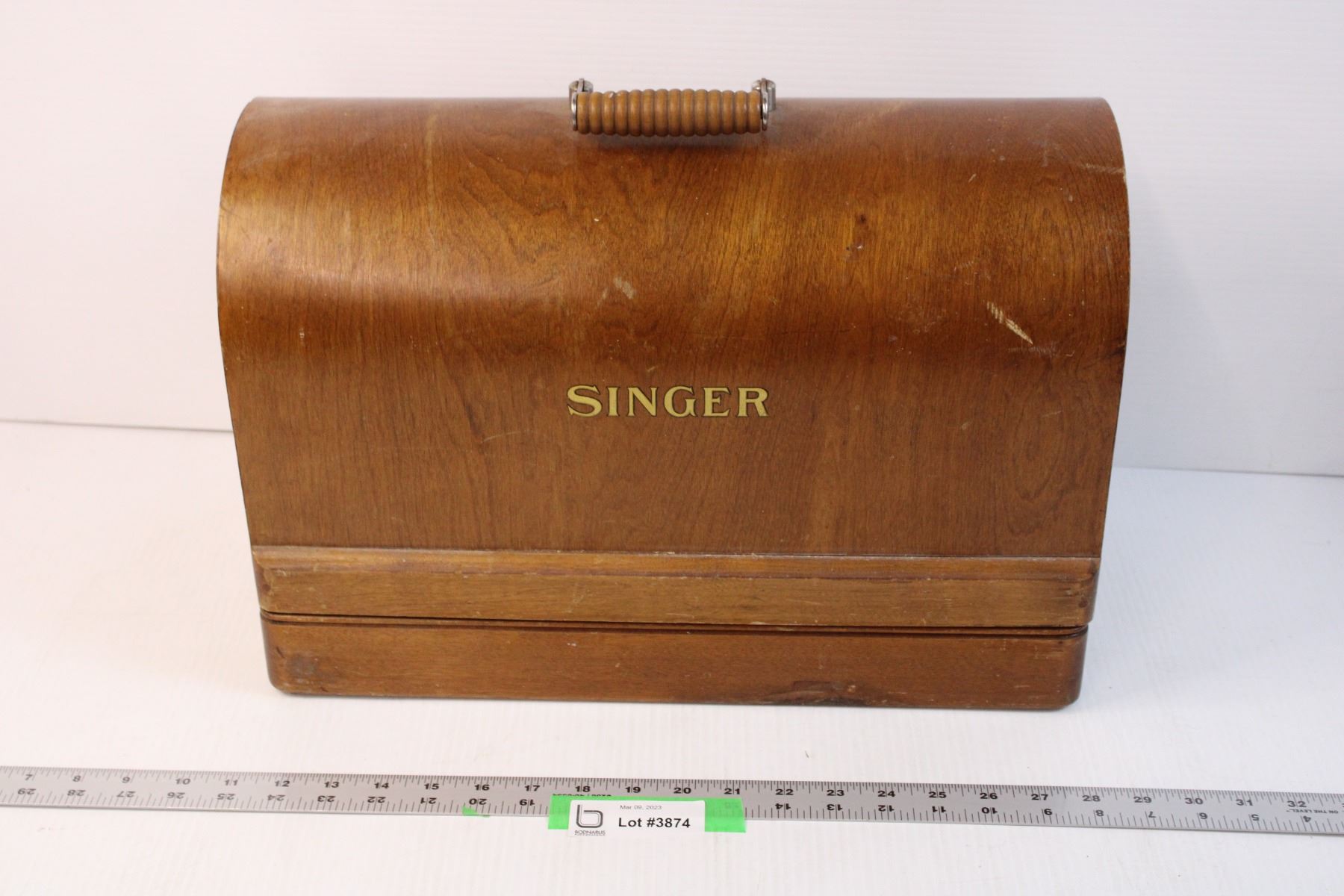 Vintage Wooden Singer Sewing Machine Case with No Key (Some Scuffs on the Wood)