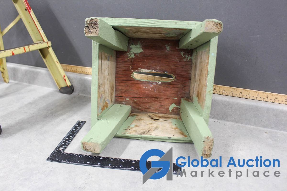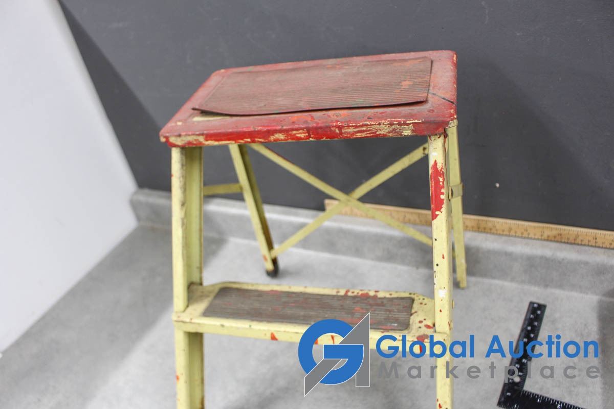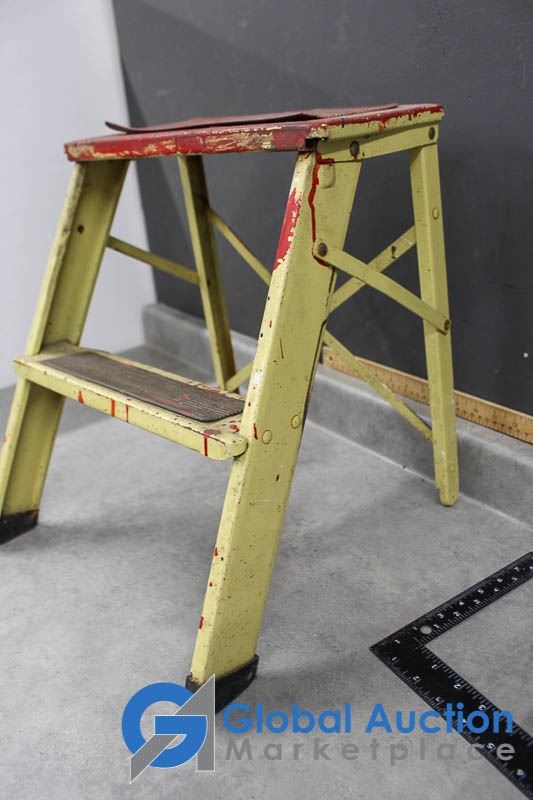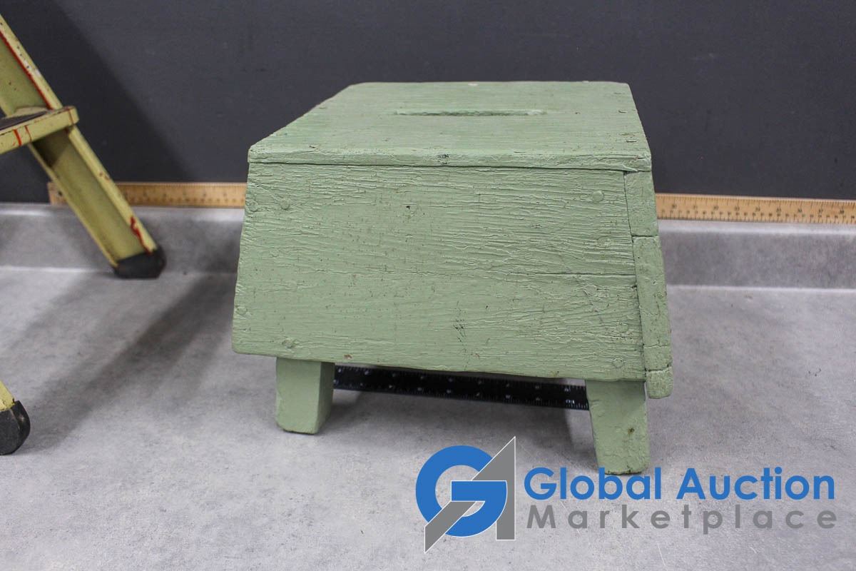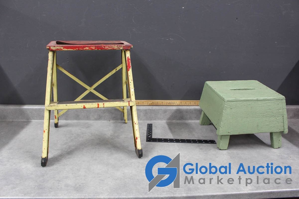 Vintage Wooden Step Stool & Metal 2-Step Stool