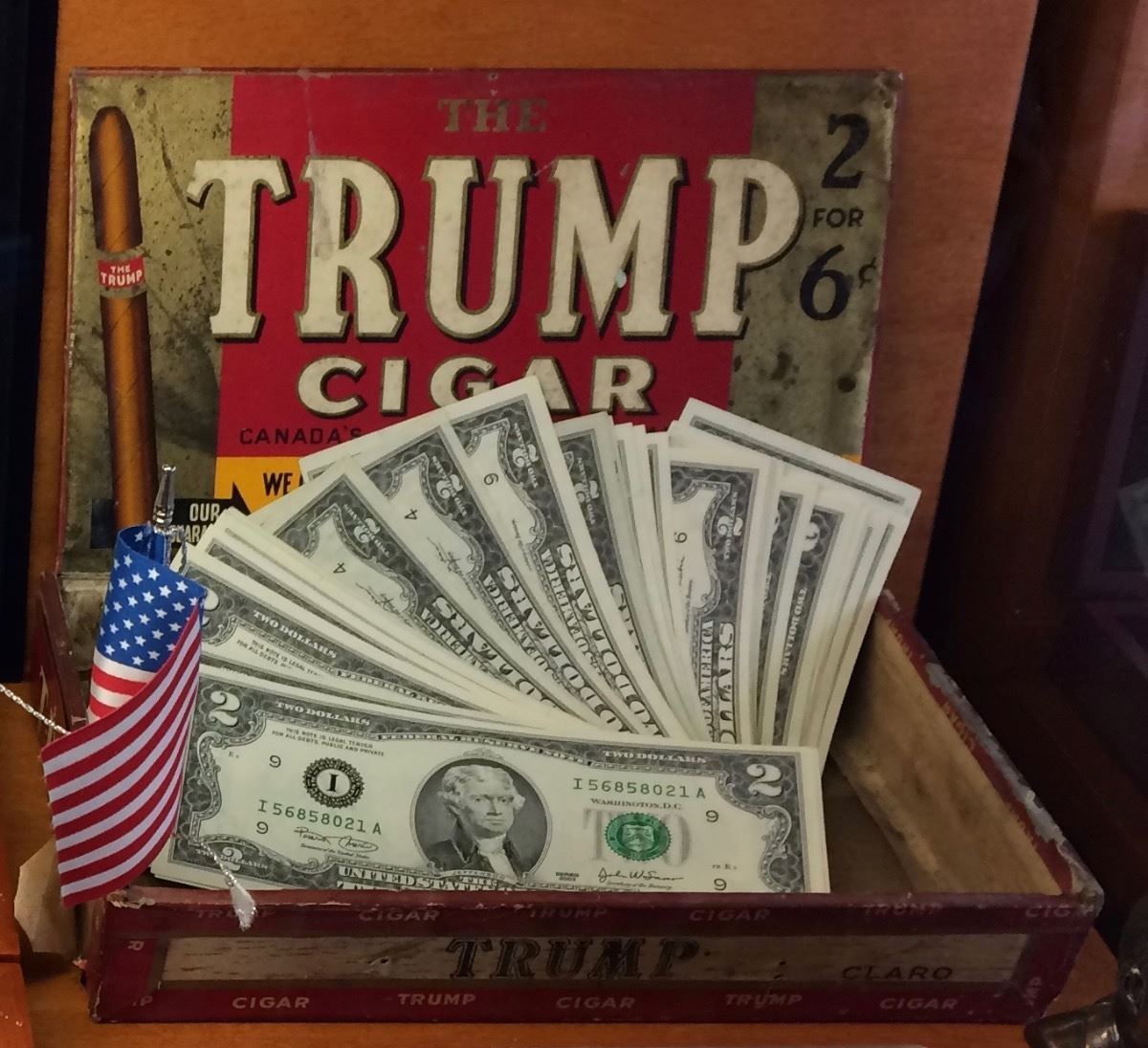 Vintage Wooden Trump Cigar Box With 25 x American 2$ Banknote Great Again.!!