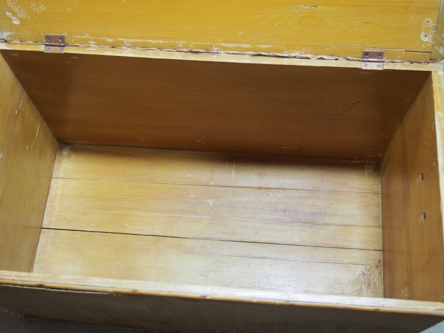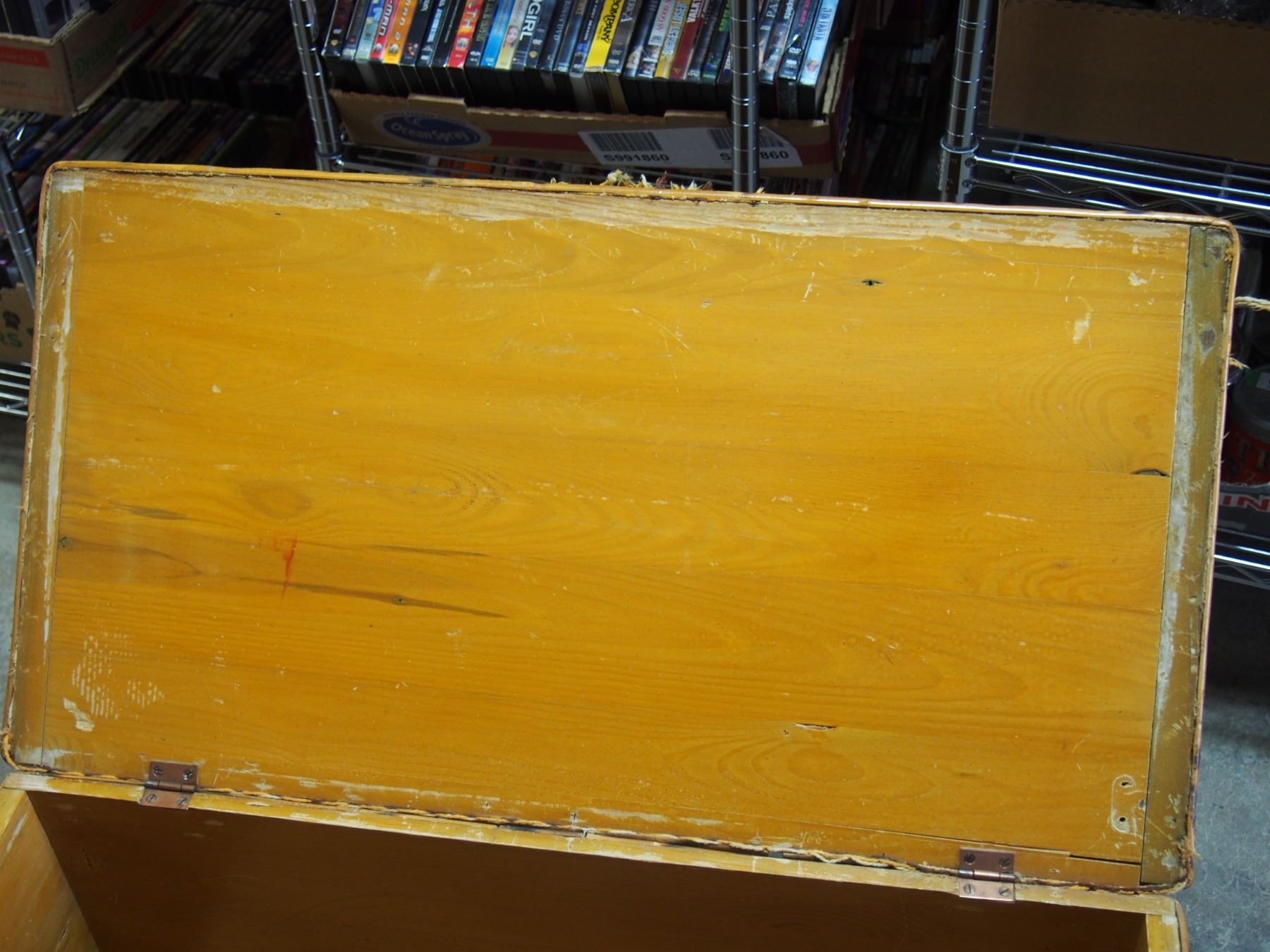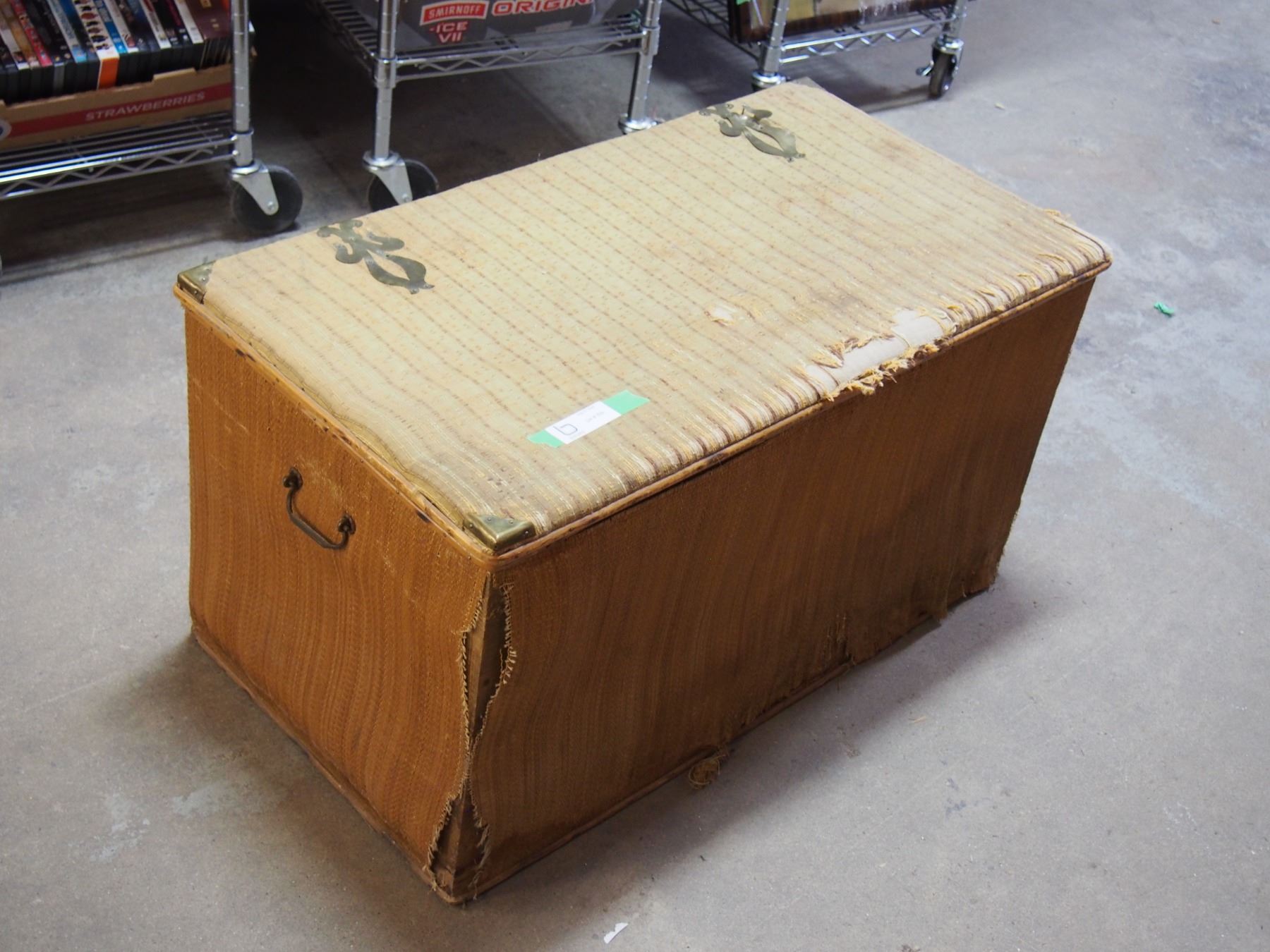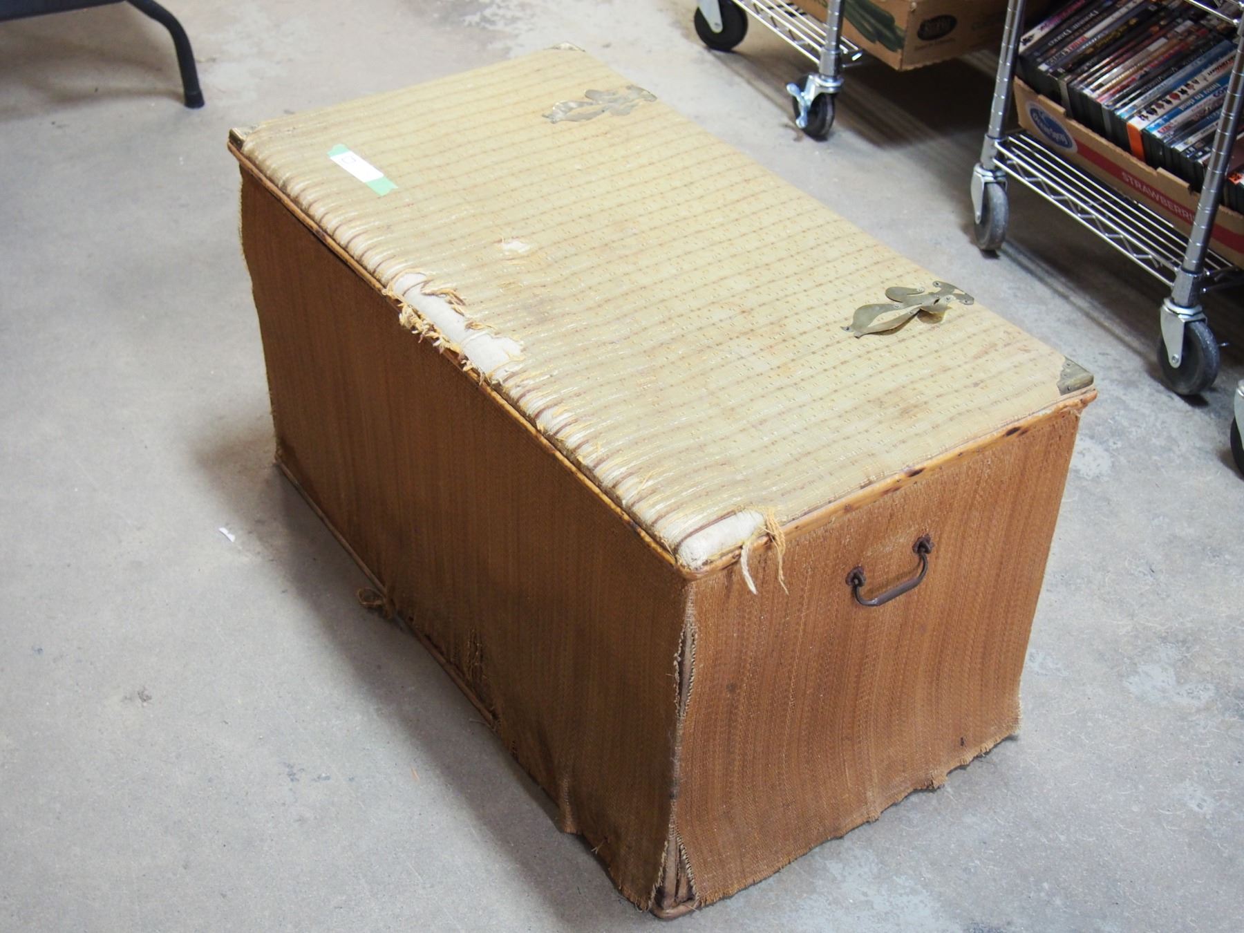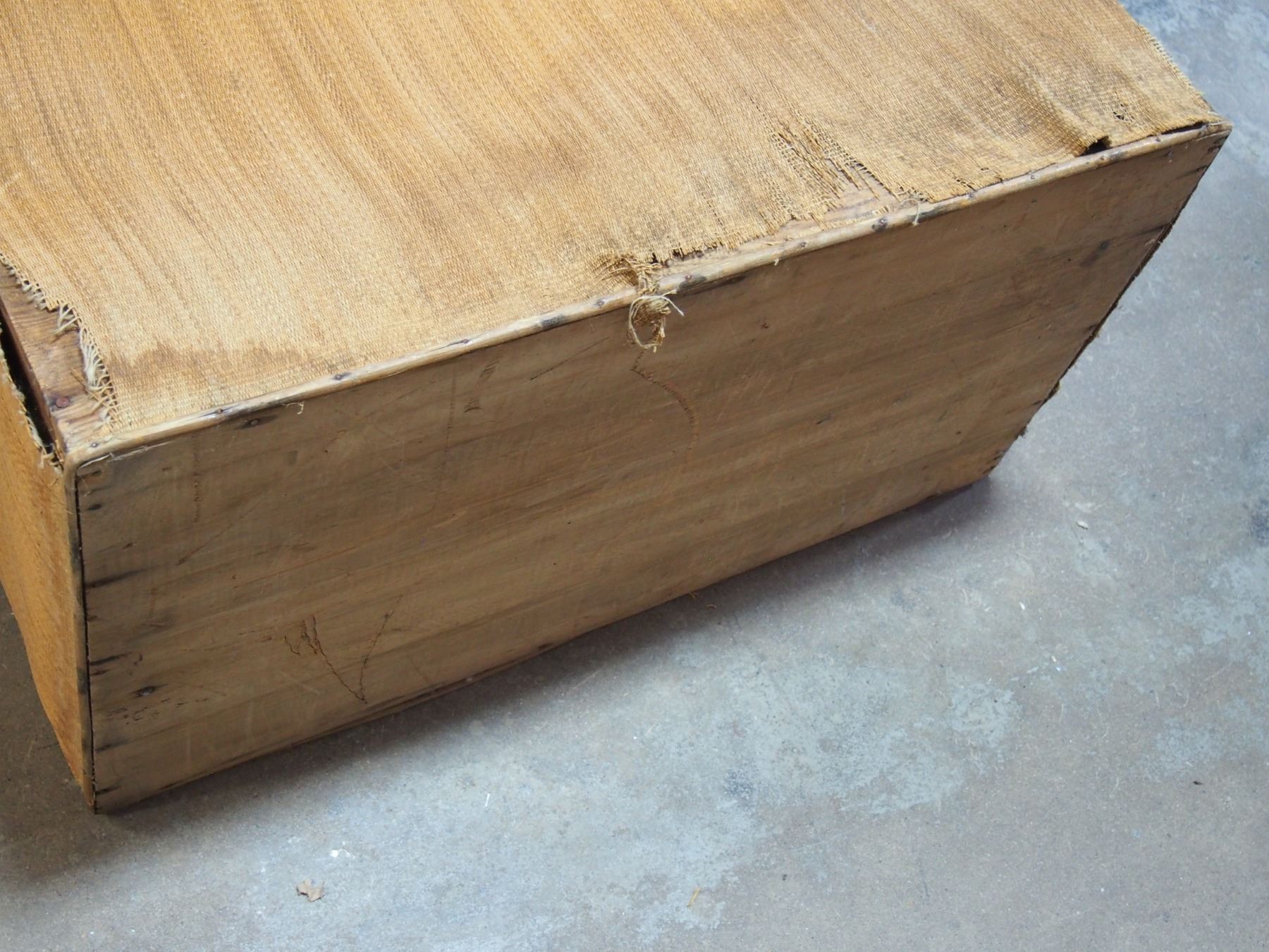 Vintage Wooden Trunk with Hardware 34 by 18 by 17.5" T