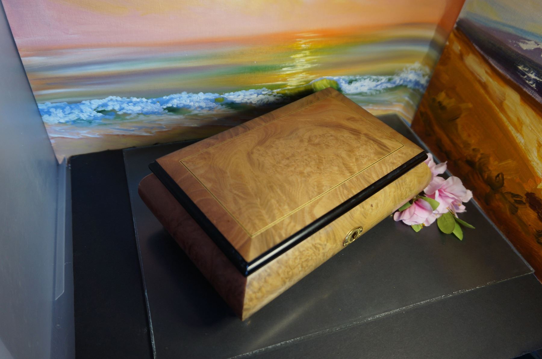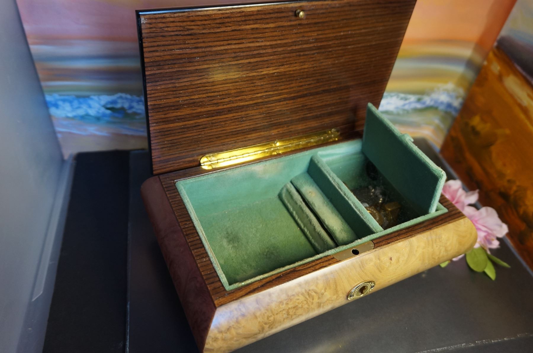 Vintage Wooden jewelry box, Made in Italy, Romance The Sound of Music R.Rodgers, Swiss Musical Movem