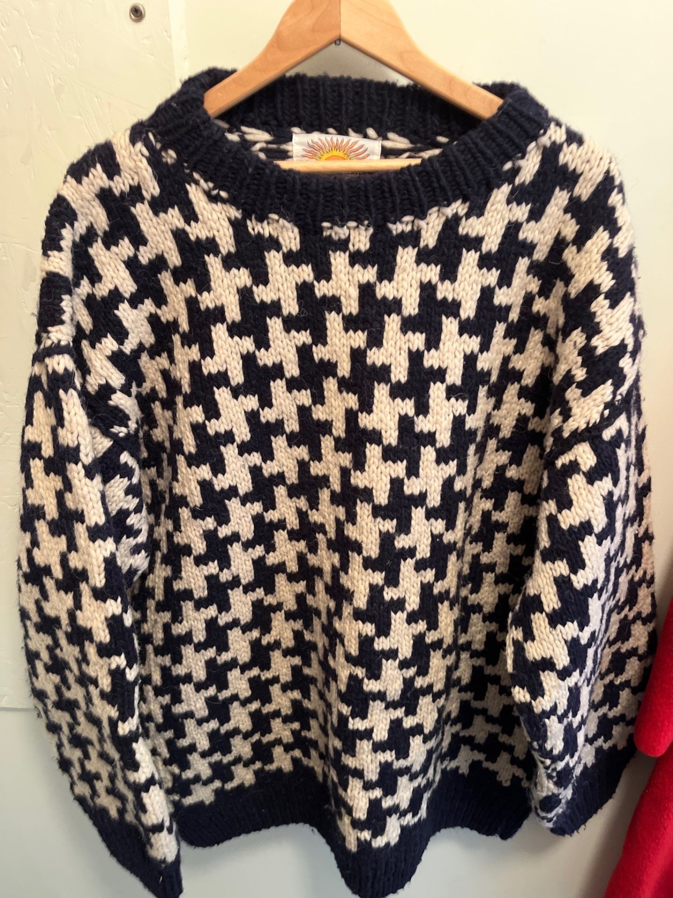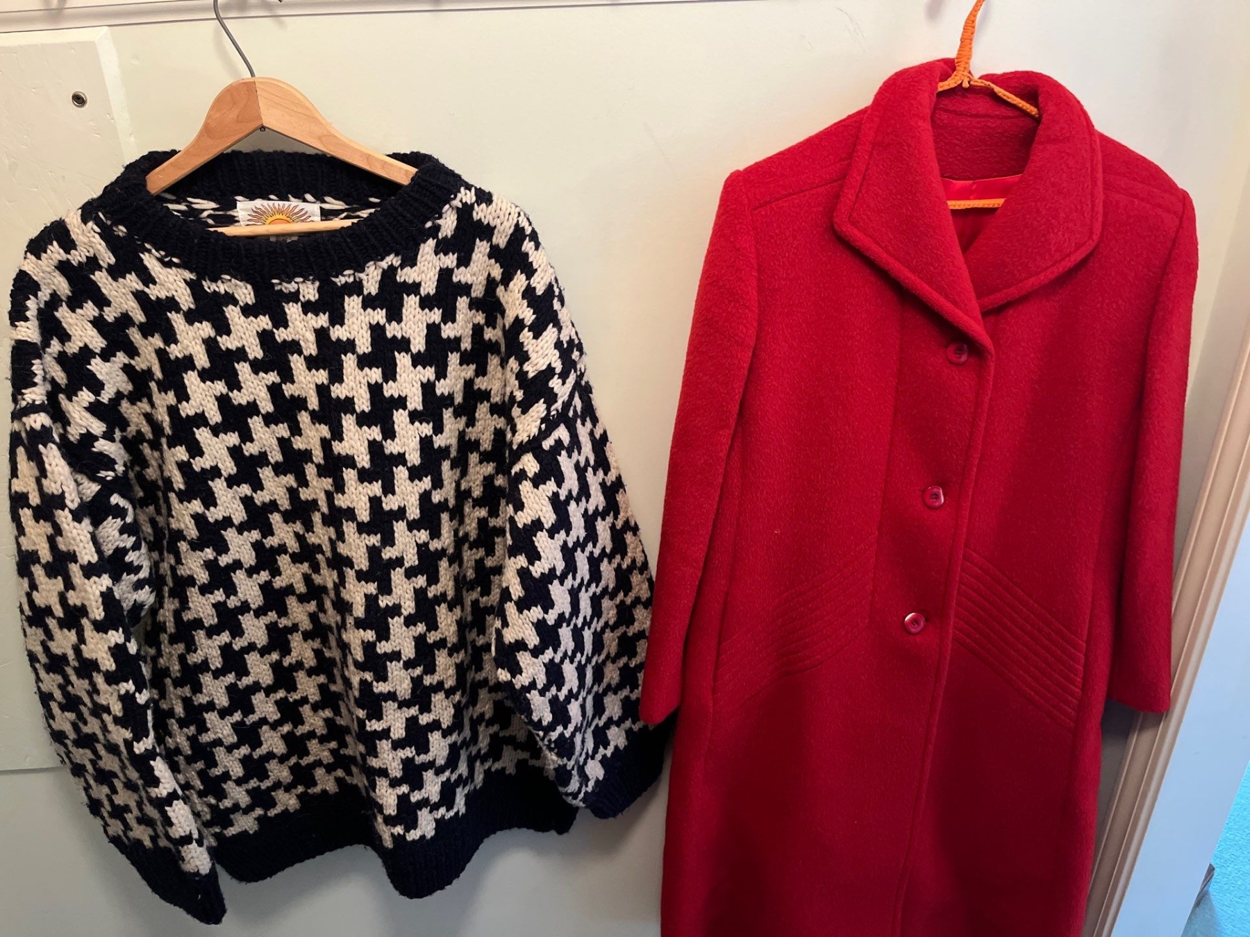 Vintage Wool 3/4 length ladies Jacket made in Canada and Navy Blue & White hand made sweater .