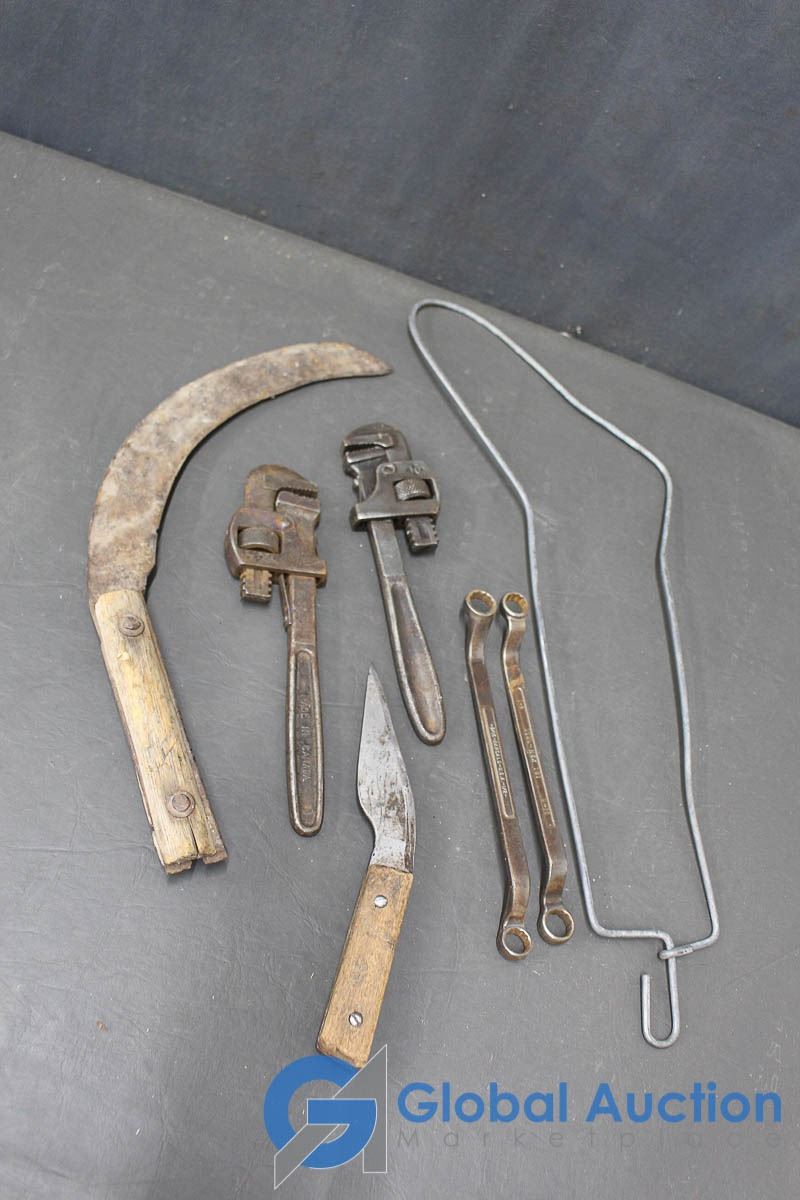 Vintage Wrenches, Pipe Wrenches, Stocking Stretcher, Sickle