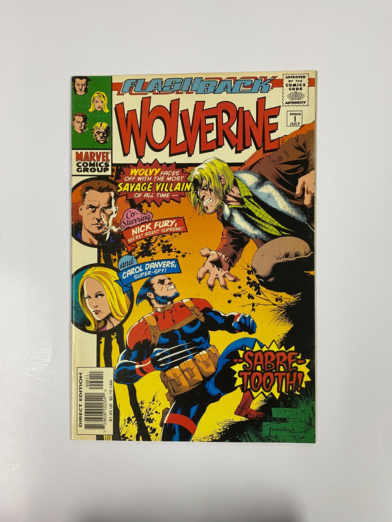 Flashback Wolverine #1 Wolvy Forces off with the mosr savage villiain of all time--Sabre Tooth!, $1.95,