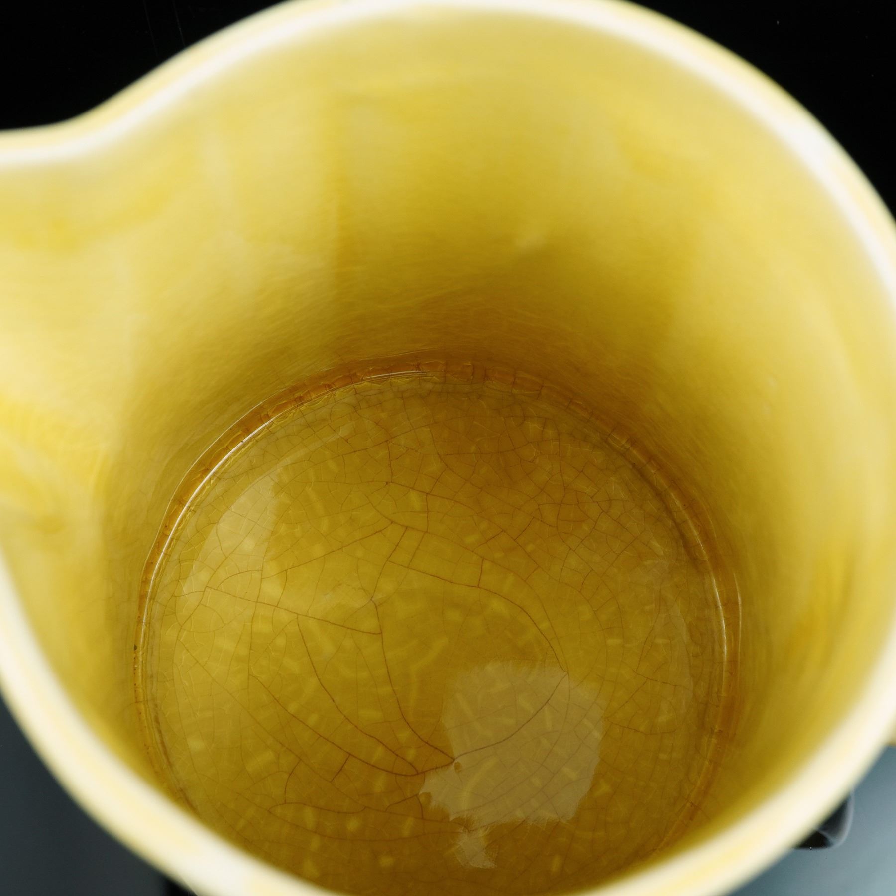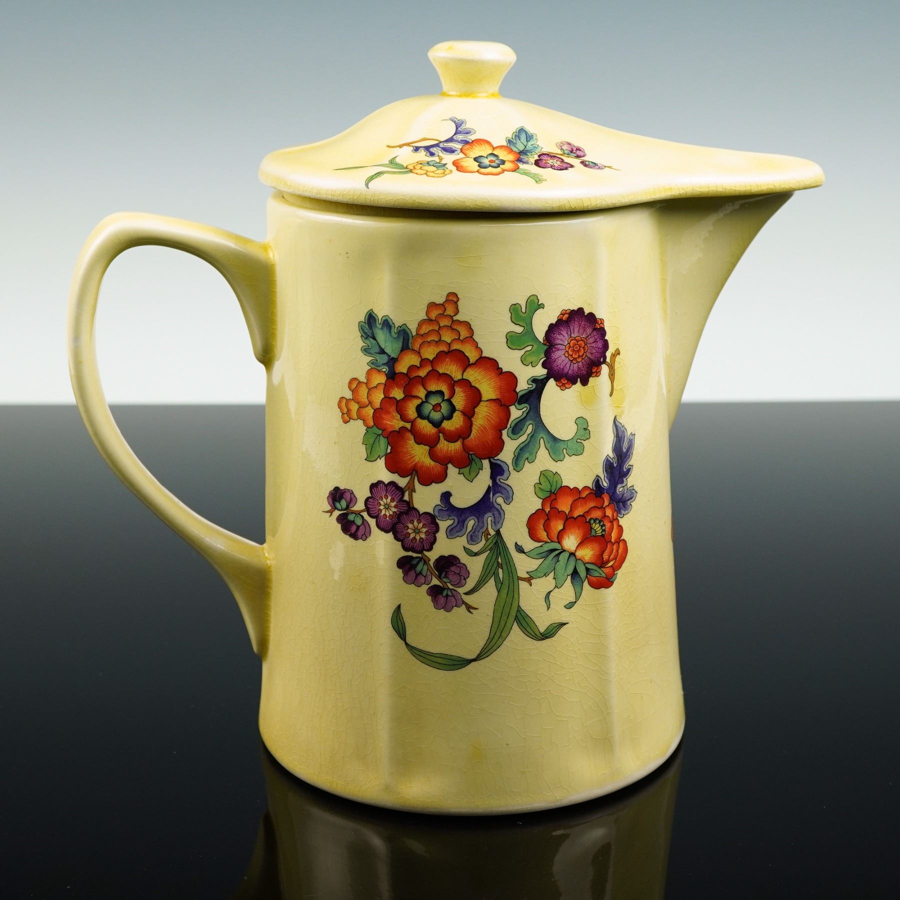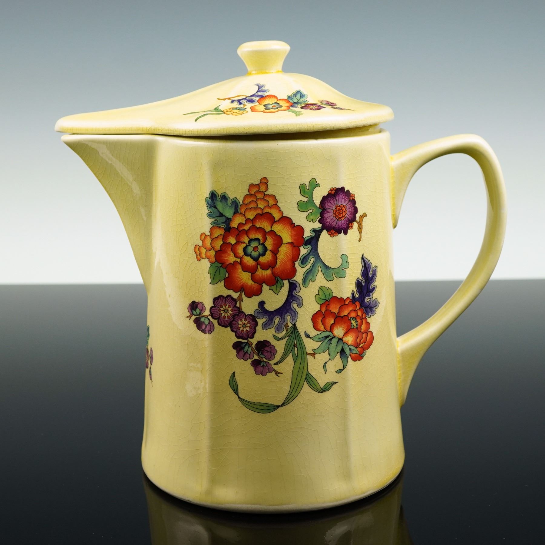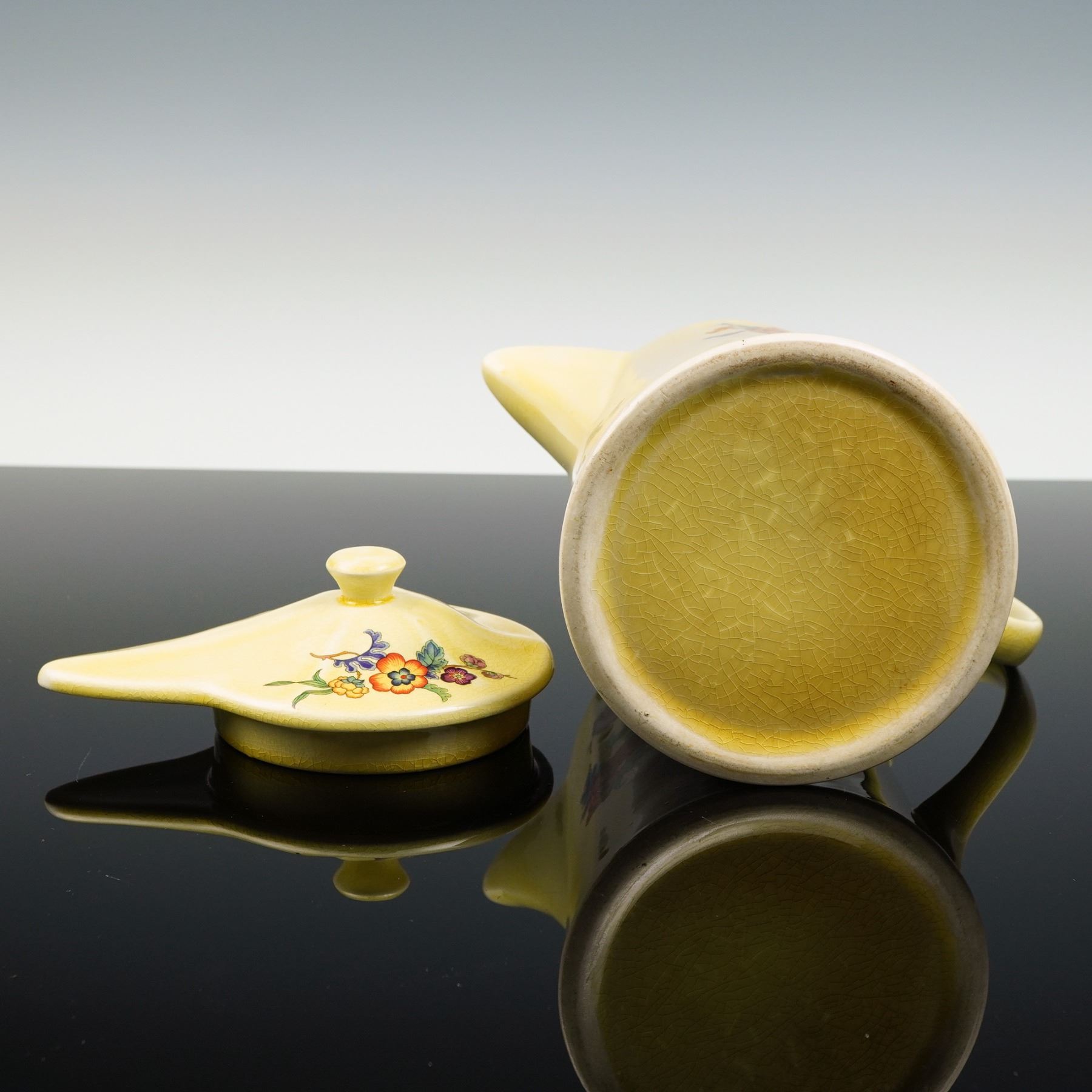 Vintage Yellow Glazed Ceramic Coffee Pot with Polychrome Floral Motif