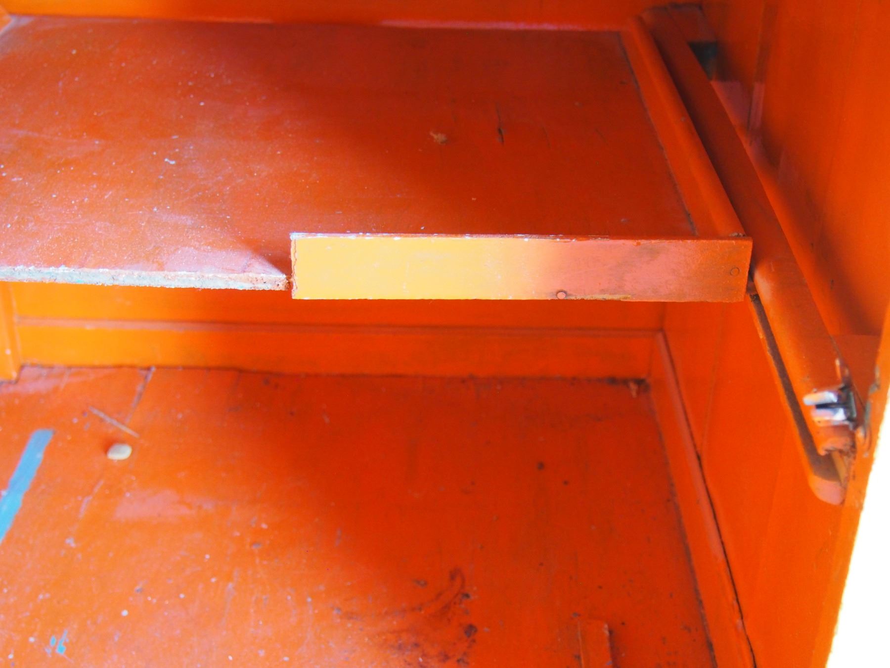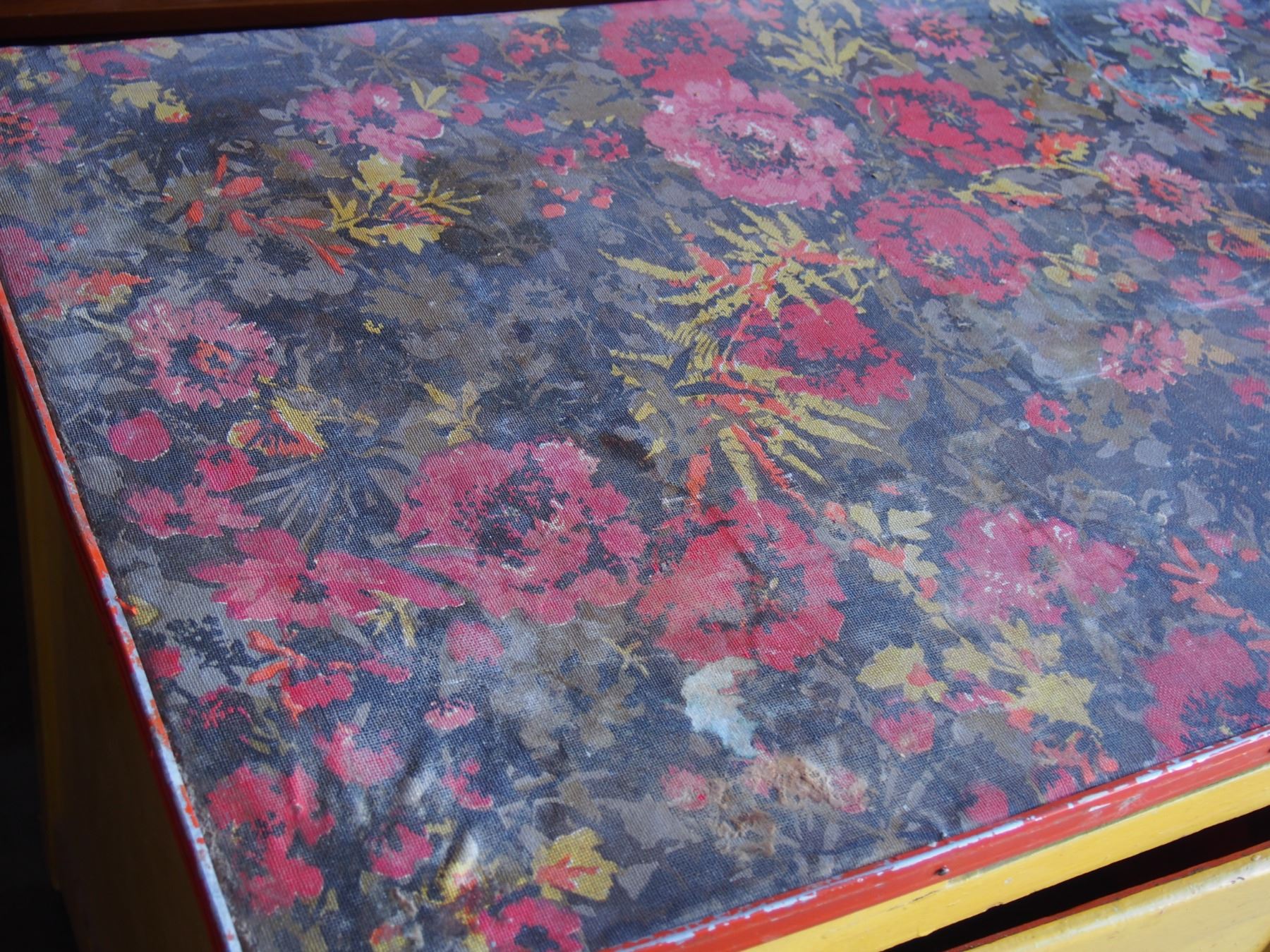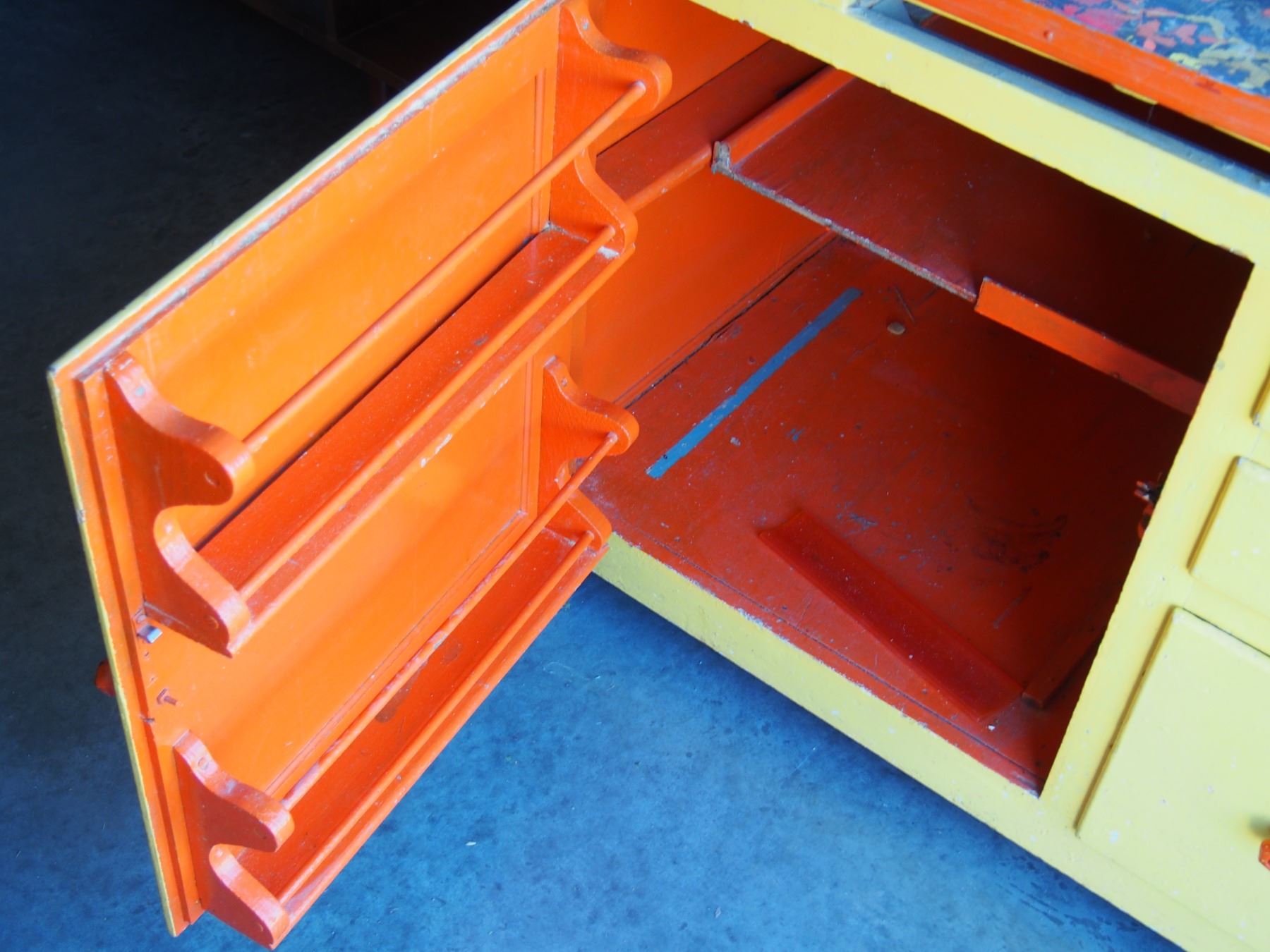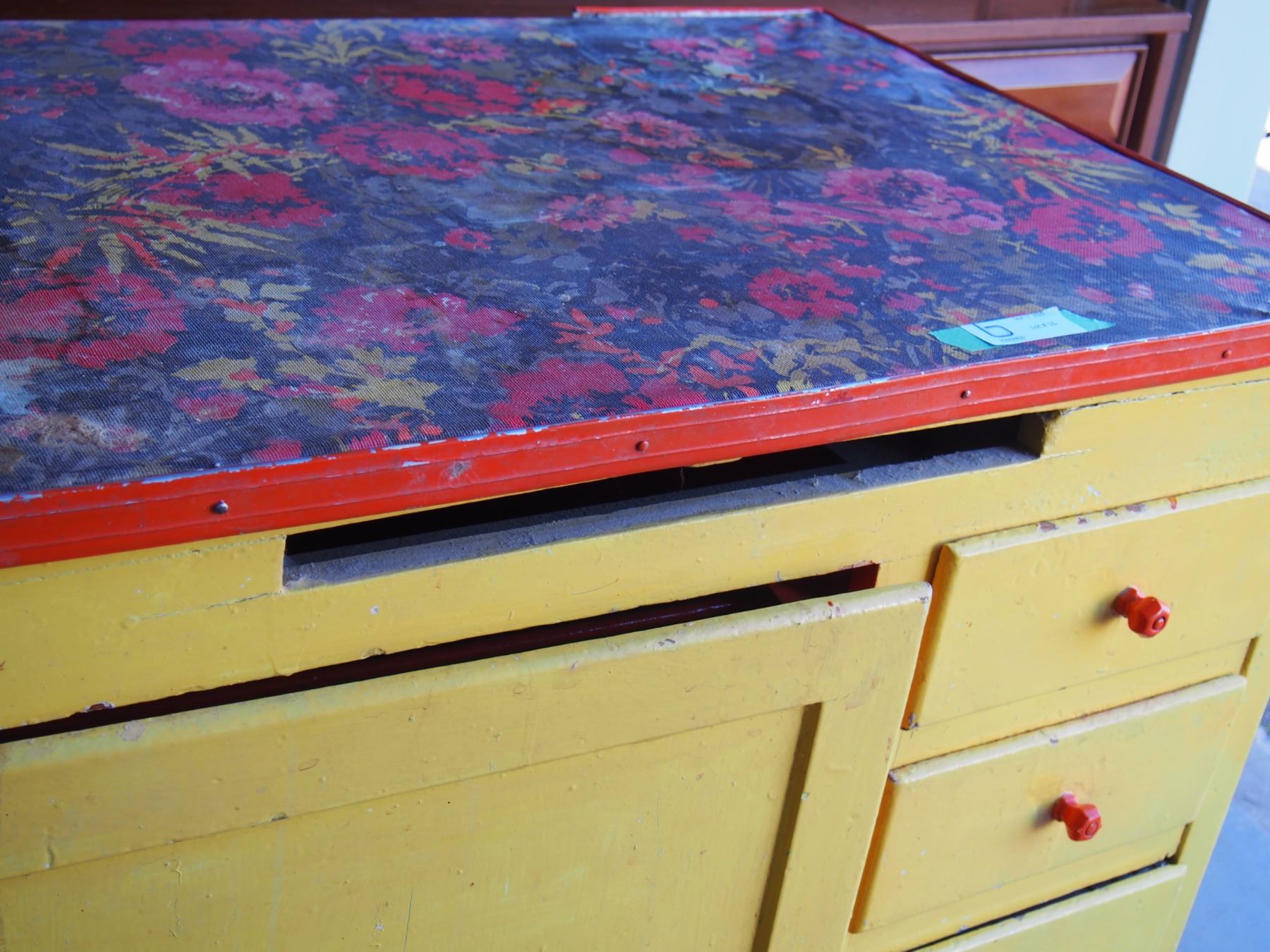 Vintage Yellow Wooden Cabinet on Casters (Missing 1) 39 by 24 by 31" T