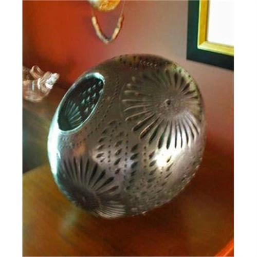 Traditional Zapotec Black-ware Pottery handicraft folk art from Oaxaca, Mexico. Post: 1950's. Hand built olla pot with decorative stylized cut-outs popular since 1950's. Known as Oaxaca black-ware cut-out pottery or Dona Rosa Pots.<p>Measurement: 10" Tall, Appx 26 Inches in Circumference. Mouth opening 3-1/2" Inches. These pots are often unsigned and hand made by Zapotec craftsmen in Mexico.