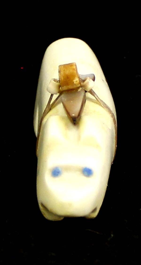 Vintage Native American Zuni Carved Stone Bear Fetish, measures 2'' x .5'', carved abalone arrowhead spirit bundle, turquoise eyes