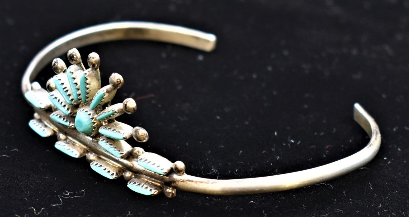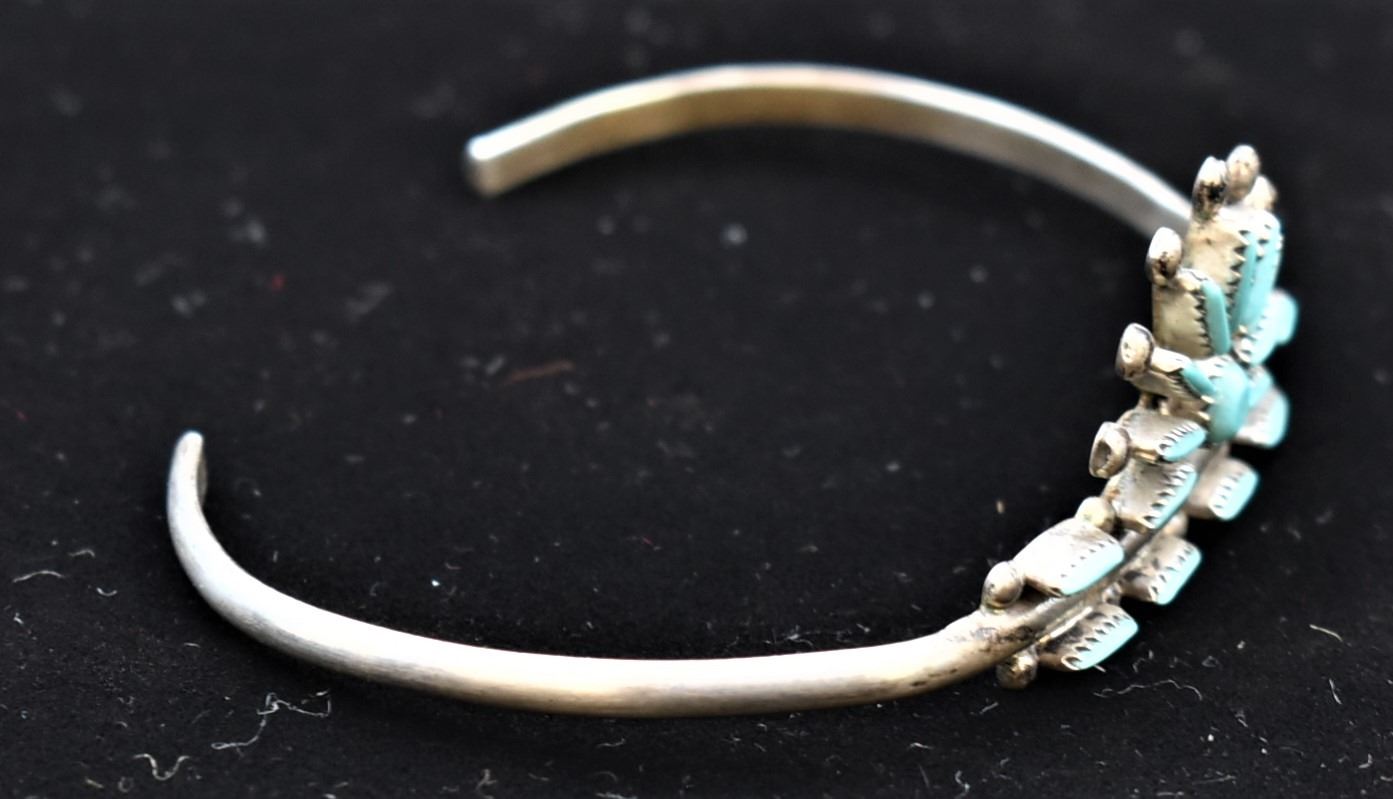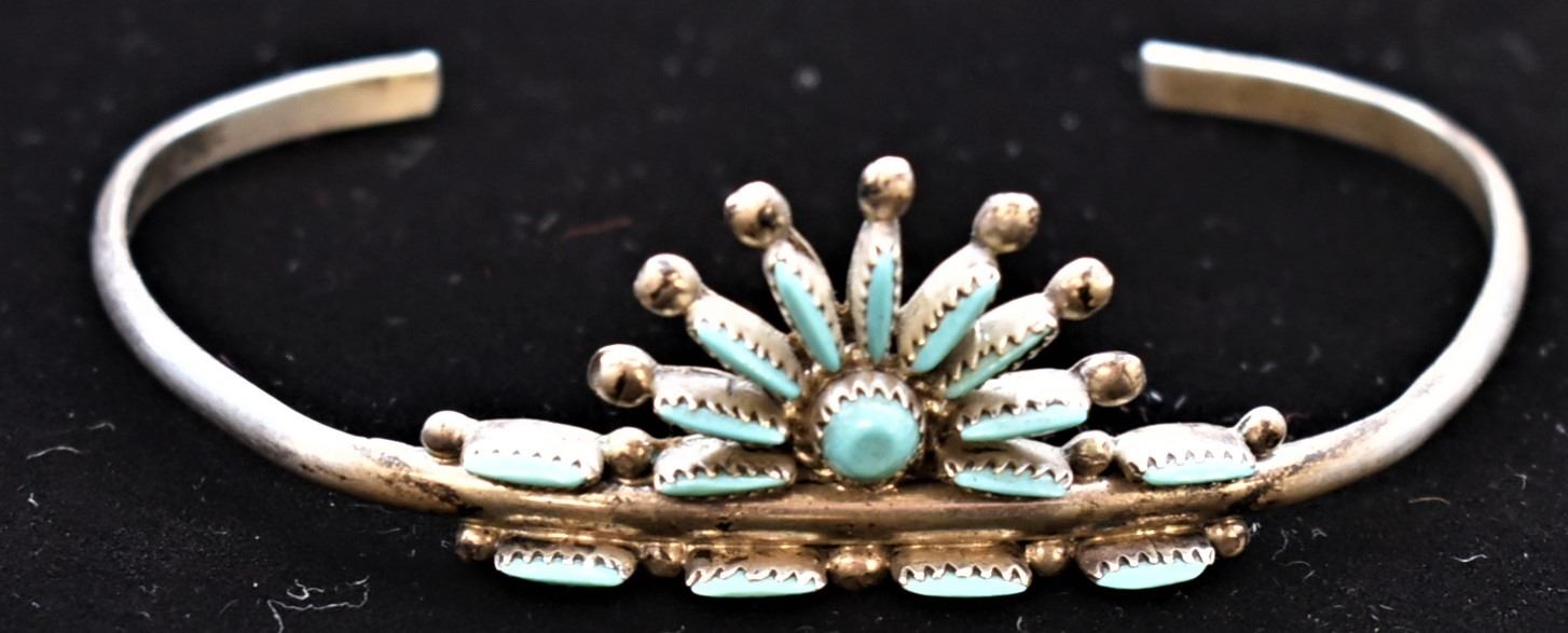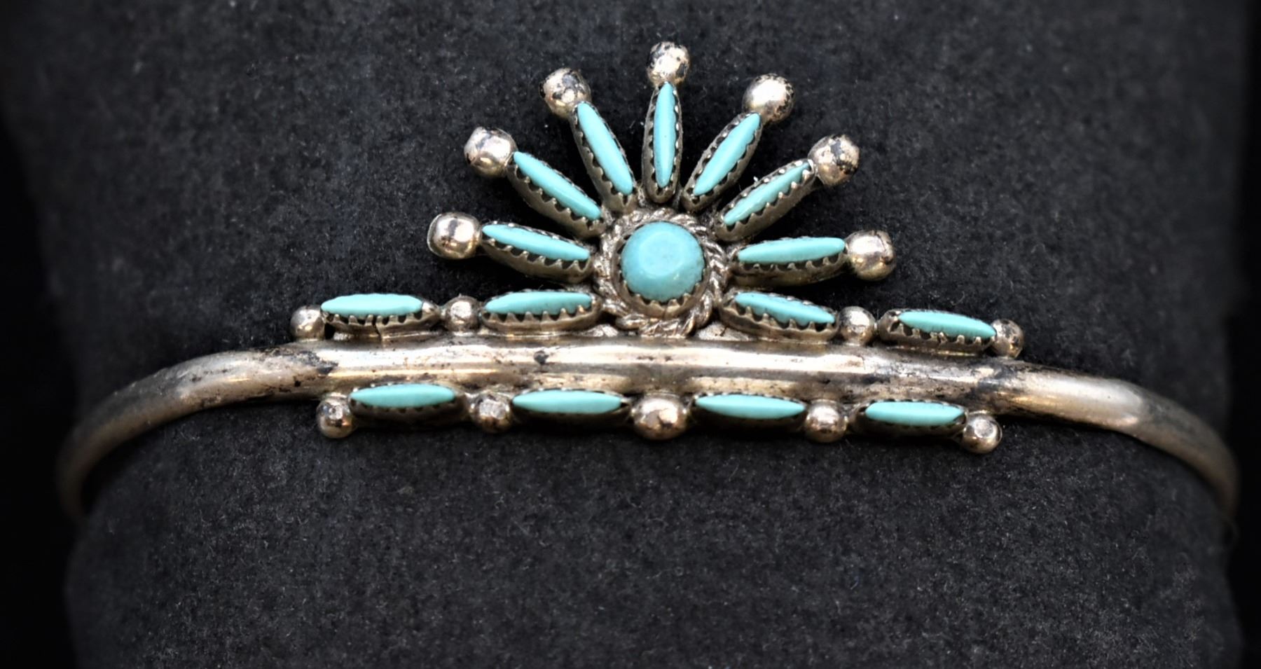 Vintage Native American Zuni Needlepoint Turquoise Cuff Bracelet, inside measures 7.25'' which includes the gap x .75''W, Sleeping Beauty Turquoise