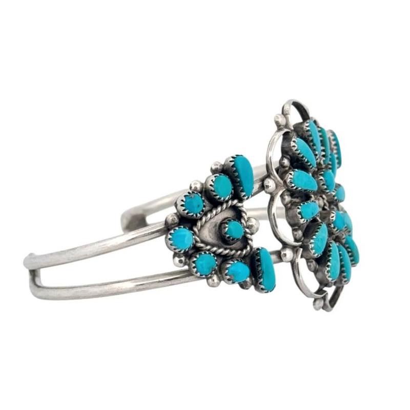 Vintage Zuni Snake Eye Turquoise Cuff Bracelet Sterling Silver Old Pawn