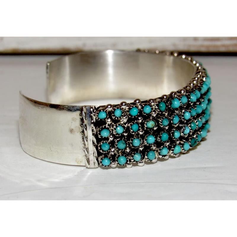 Vintage Zuni Snake Eye Turquoise Cuff Bracelet Sterling Silver