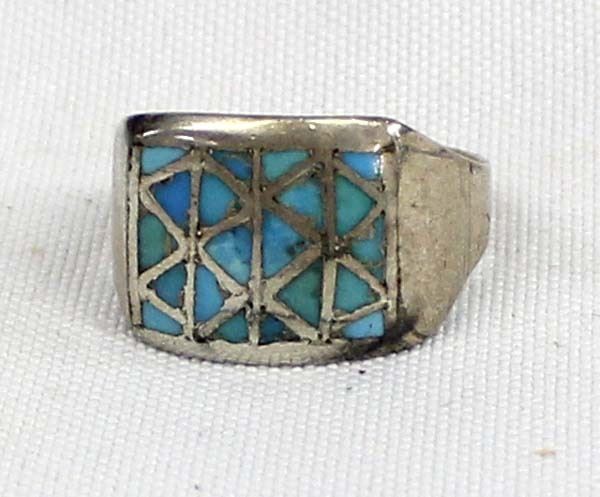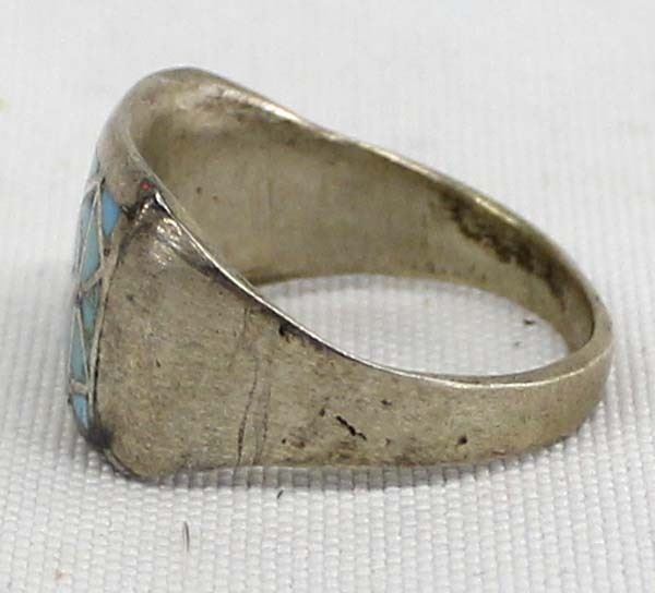 Vintage Native American Zuni Sterling Inlay Turquoise Ring, Size 11, measures .5''