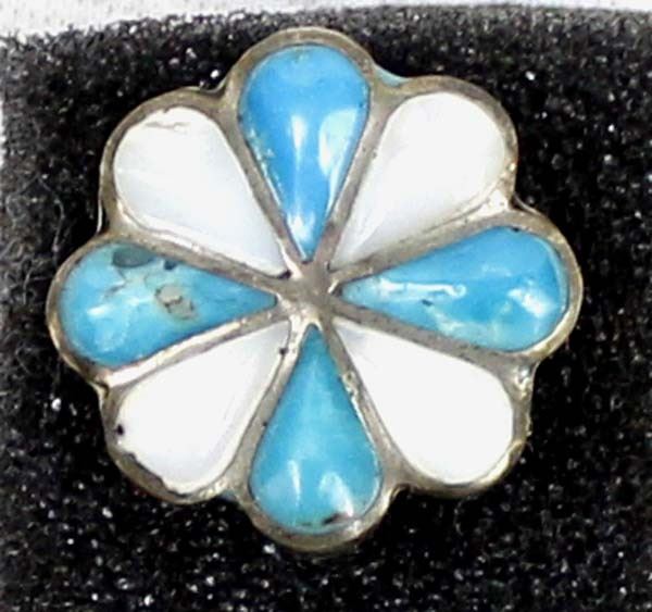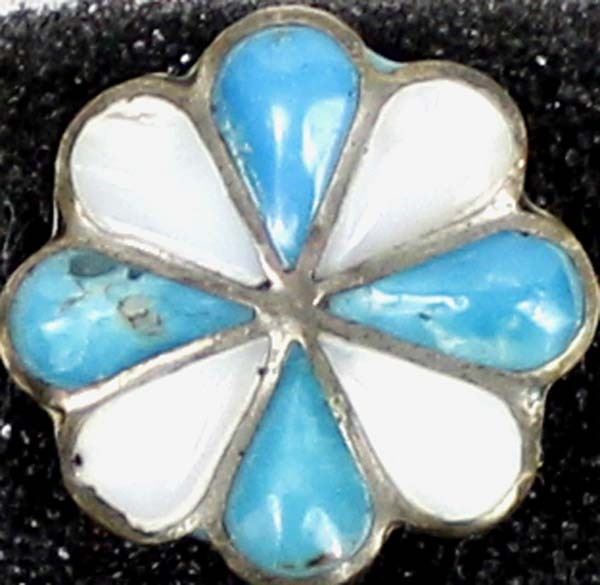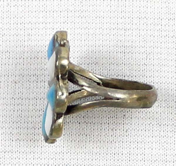Vintage Native American Zuni Sterling Turquoise & Mother of Pearl Overlay Ring, Size 5.5, measures .75''D