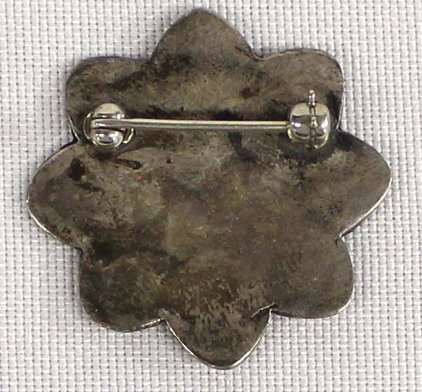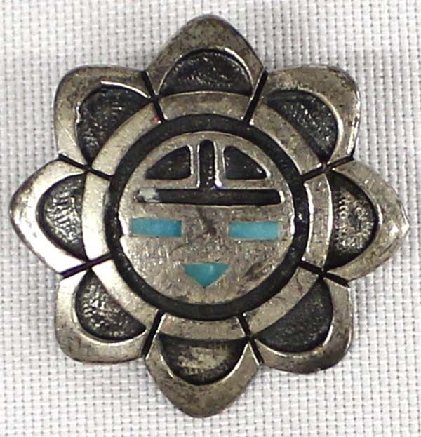 Vintage Native American Zuni Sterling and Inlay Turquoise Sun Face Kachina Pin, measures 1''