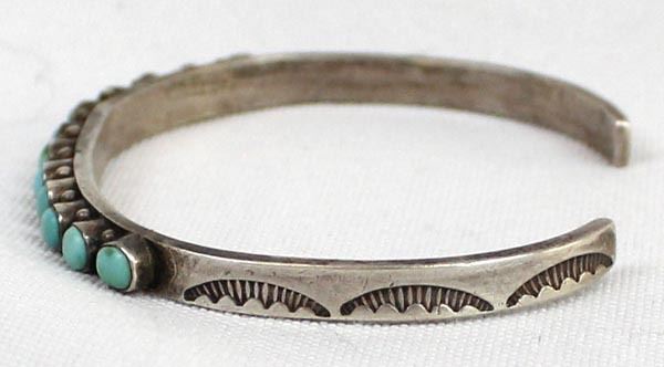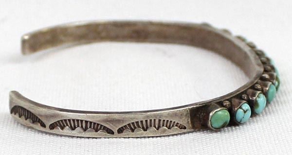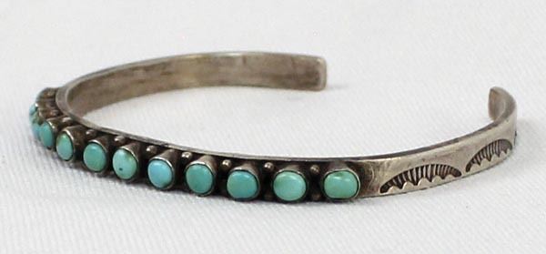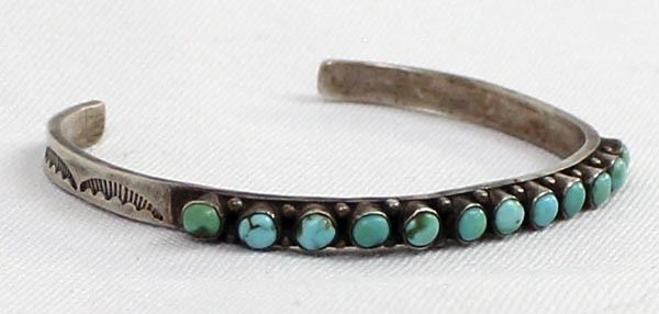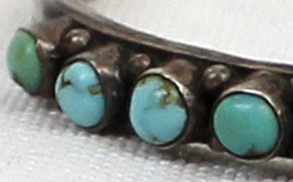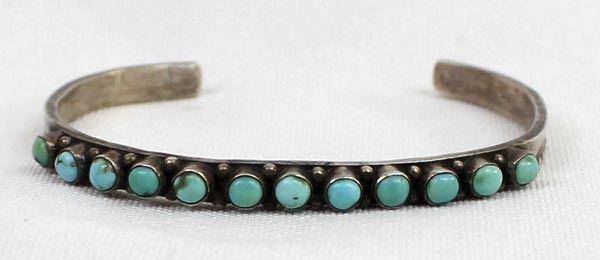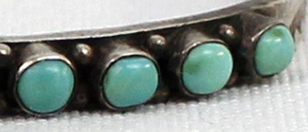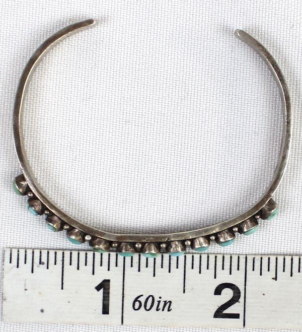 Vintage Native American Zuni Sterling Petit Point Turquoise Bracelet, inside measures 6'' which includes the gap x .25''W