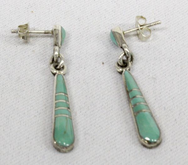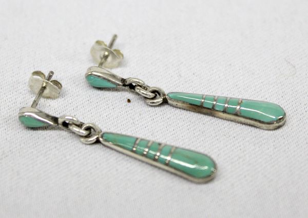 Vintage Native American Zuni Sterling Turquoise Channel Inlay Drop Earrings by Ed Lupee, simple yet elegant, measures 1.5''L and are stamped ''Zuni'' and hallmarked by artist, beautifully made and still have the original sterling backs.