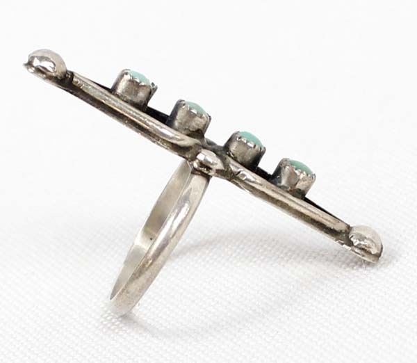 Vintage Native American Zuni Sterling Turquoise Ring, Size 6.25, measures 1.5''L x .25''W, beautiful blue green turquoise
