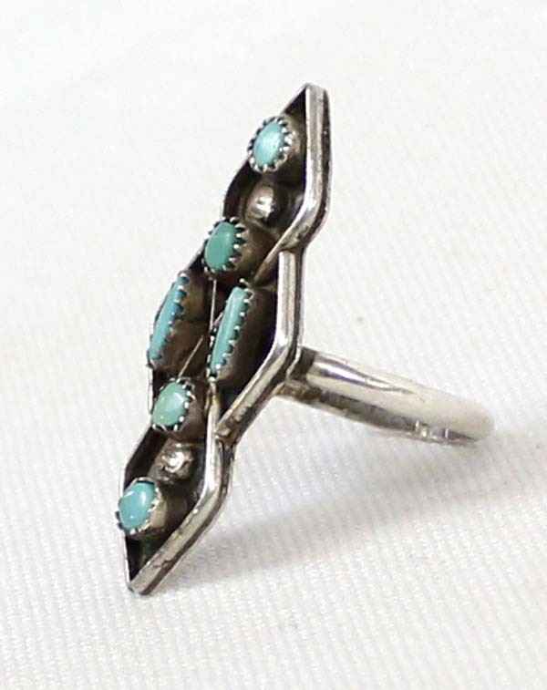 Vintage Native American Zuni Sterling Turquoise Ring, Size 6, measures 1.25''L x .5''