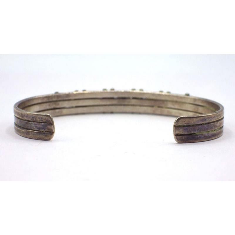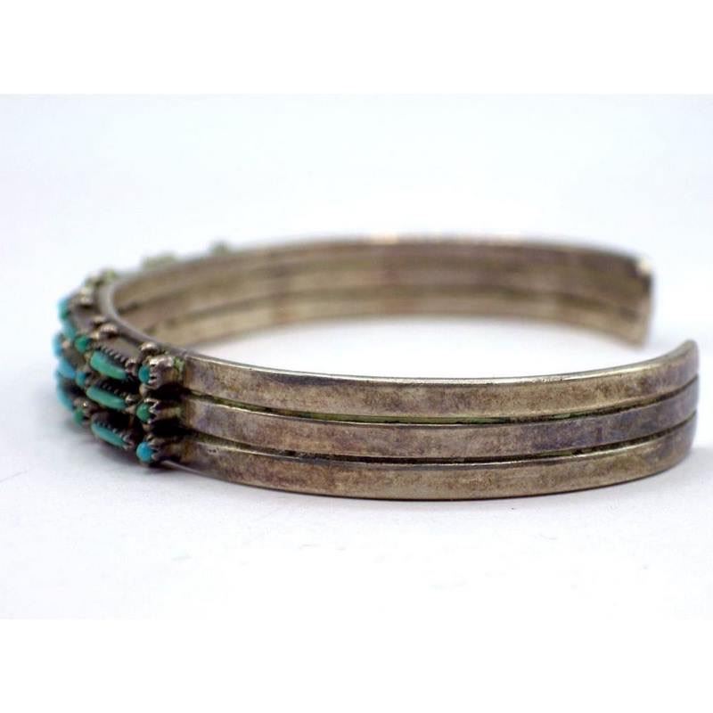 Vintage Zuni Turquoise Petit Point Cuff Bracelet Sterling Silver. This stunning vintage Native American Zuni sterling silver bracelet features three rows of natural turquoise snake eye and petit point cabochons. The inside circumference in 6.5-7" range and can be adjusted. Appears to be signed on the back. FREE SHIPPING ON ALL JEWELRY ORDERS WITHIN THE US! WE SHIP ALL ITEMS IN-HOUSE!