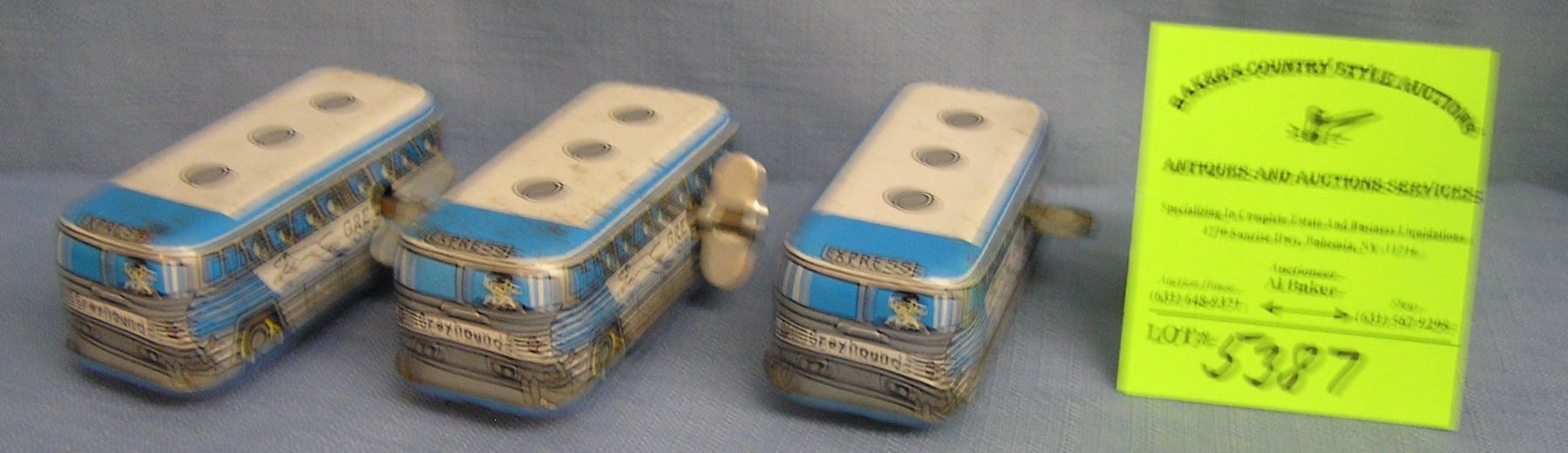 Group of three vintage all tin windup mechanical greyhound buses $175.00-$200.00