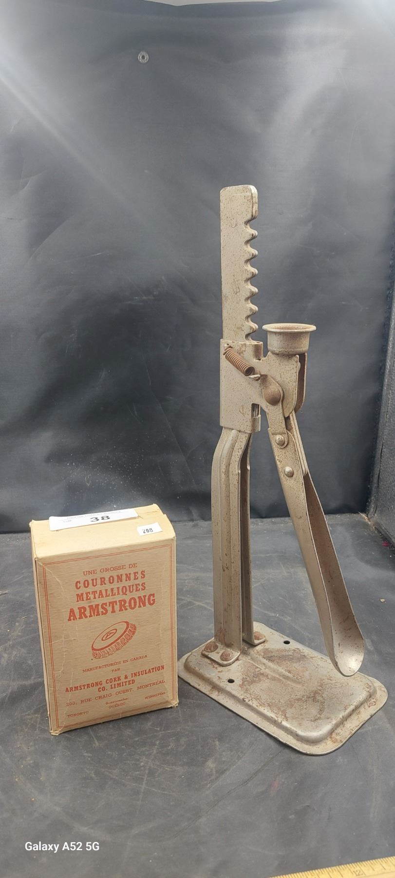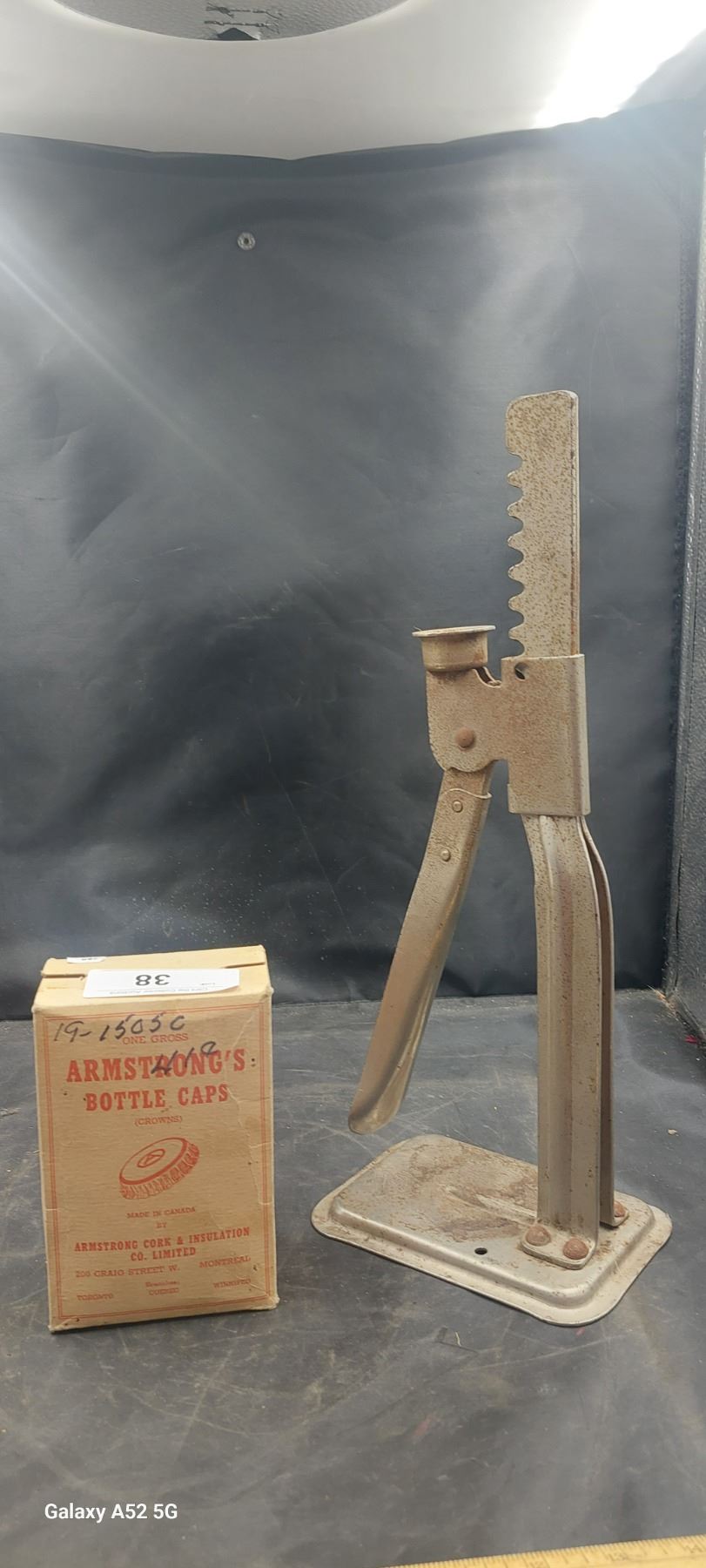 Vintage bottle capper with box of caps