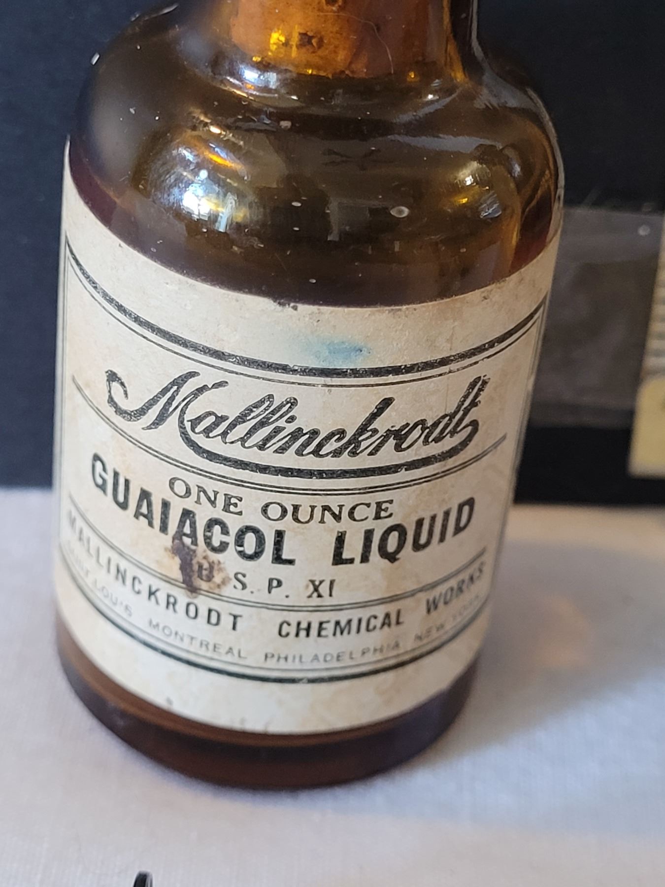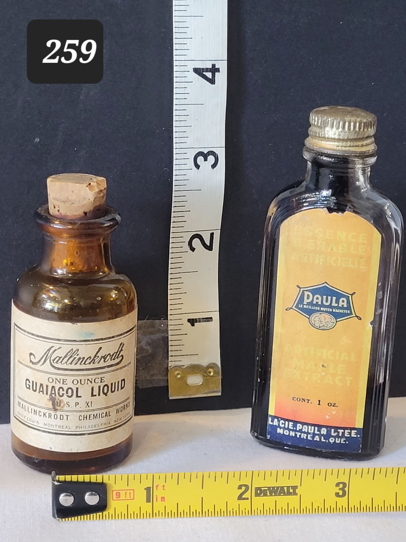 Vintage bottles. Artificial maple extract, Apothecary Guaiacol liquid