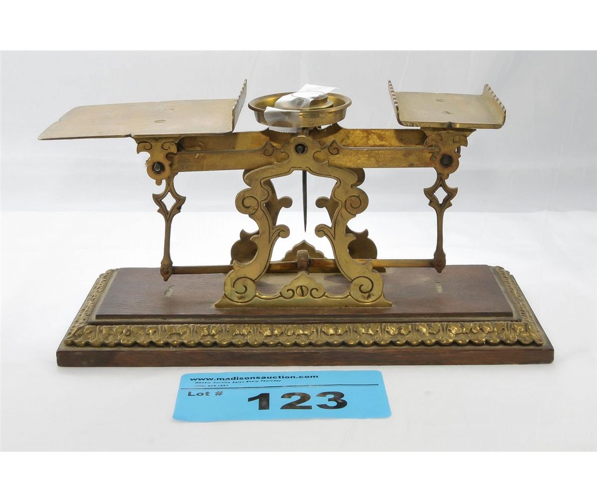 Vintage brass balance beam scale with 2 weights