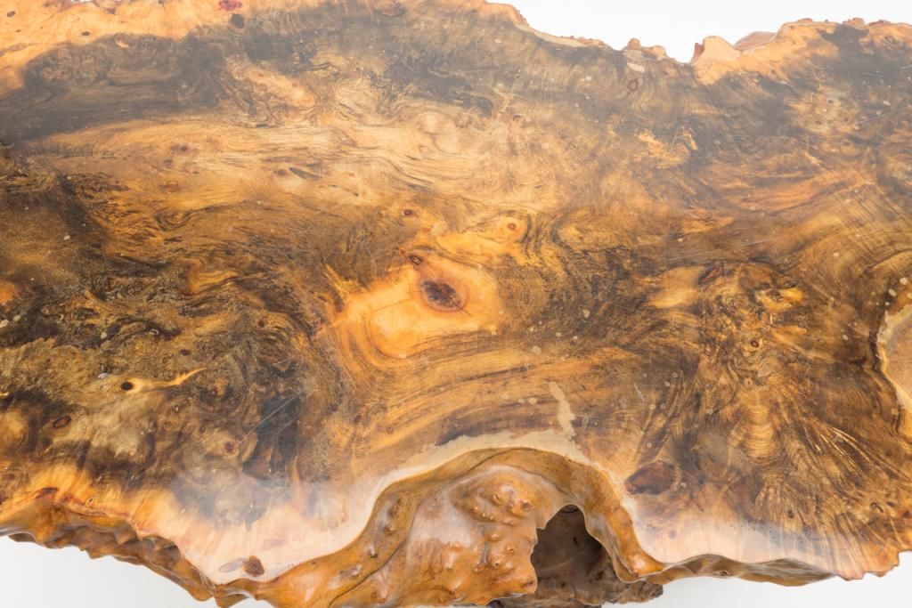 Vintage burlwood coffee table, approx. 16” tall with a beautiful finished top of approx. 39” x 17”. Est.: $100-$150.