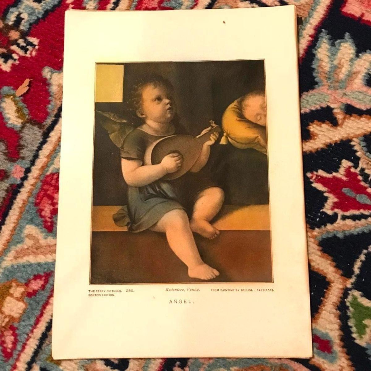 Vintage c.1920's, hand-colored half-tone print by Perry Pictures, Boston Edition #250 Angel, from a painting by Venetian Renaissance painter Giovanni Bellini ( 1430-1516 ).5 1/2" X 8" print size, suitable for framing.