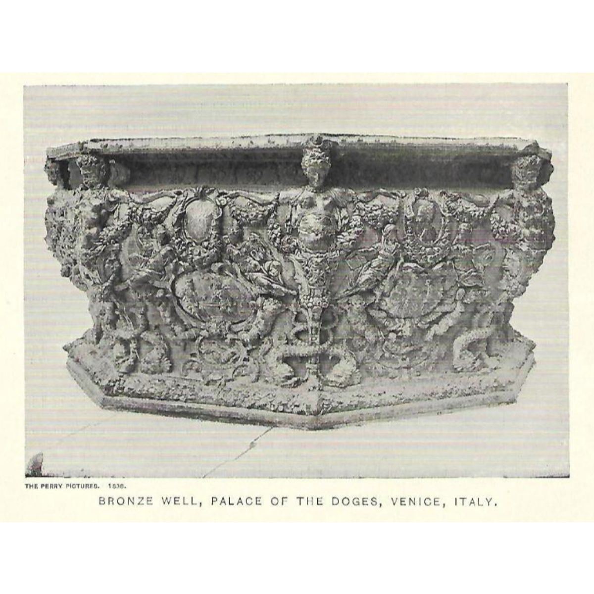 Vintage c1920’s half-tone print by Perry Pictures, #1838 Bronze Well, Palace of the Doges, Venice, Italy. copyright by Eugene A. Perry 5 1/2" X 8" print size, suitable for framing. *** Information about Perry Pictures - Eugene Ashton Perry, Master of the Center Grammar School of Malden, Massachusetts, discovered the possibility of making and distributing half-tone reproductions of famous paintings, sculptures & architecture to be sold at reasonable prices so that everyone could afford to own art. Â