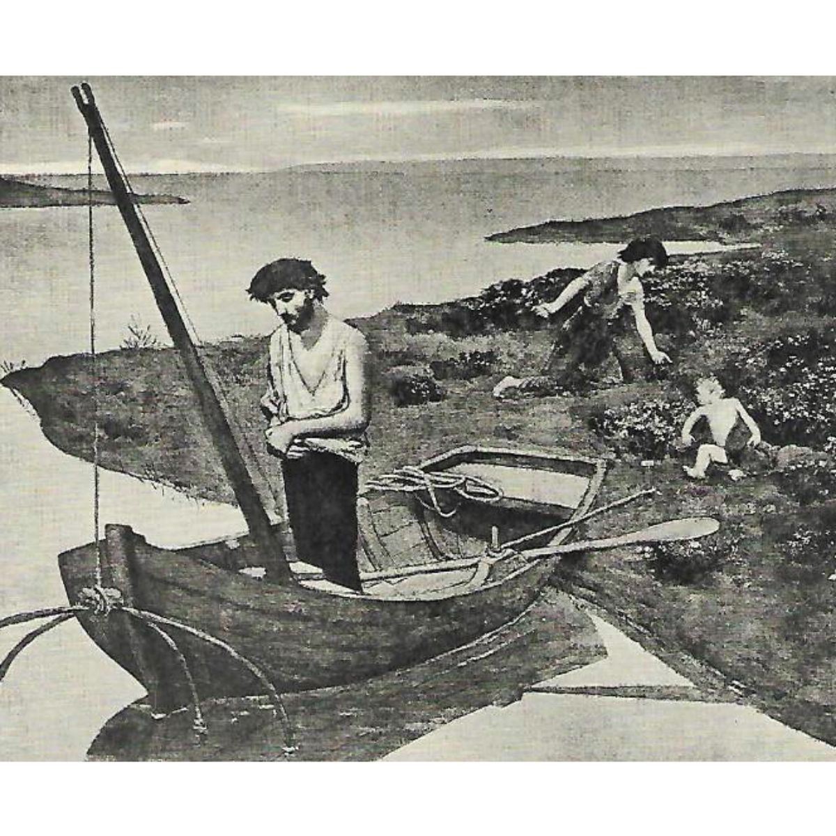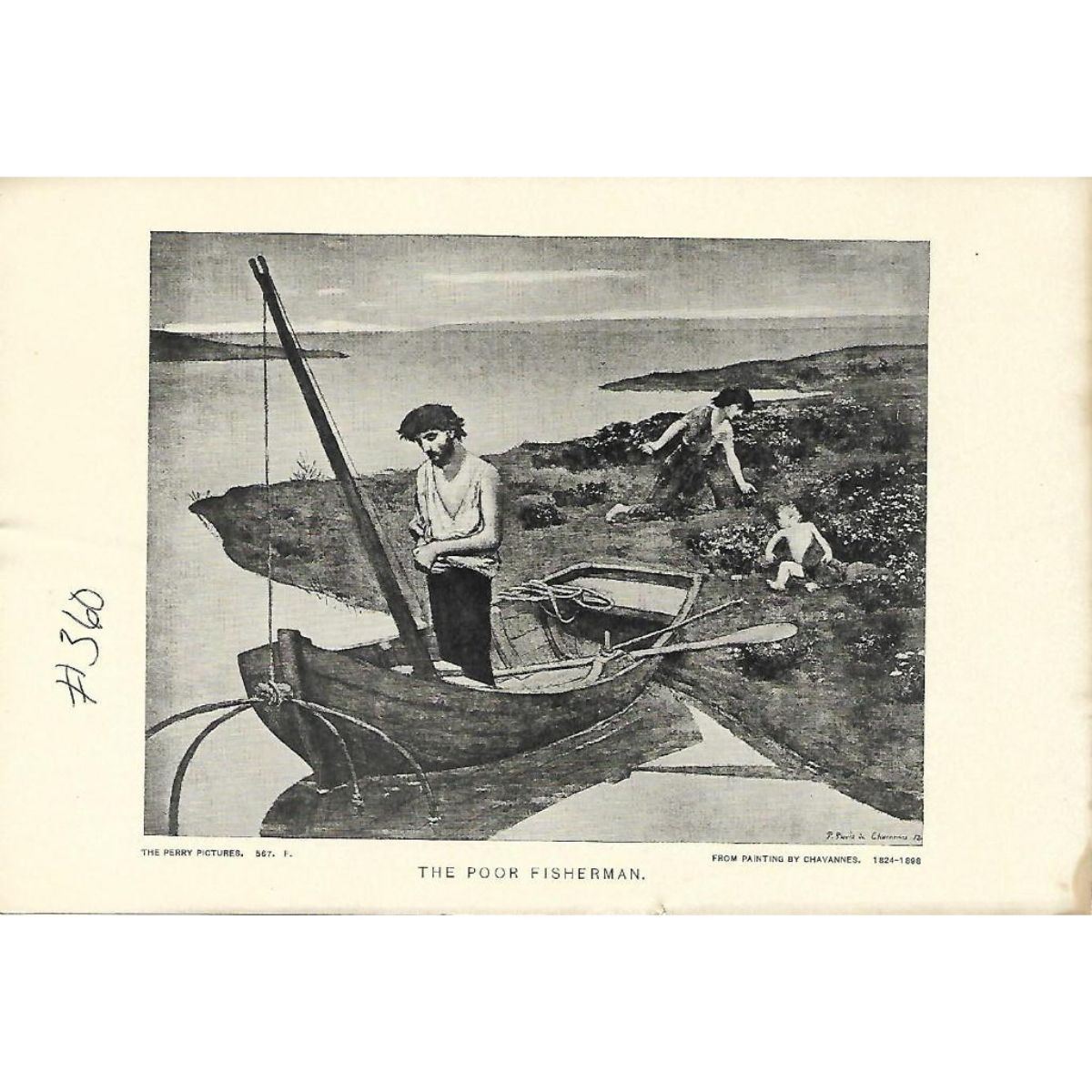 Vintage c1920’s half-tone print by Perry Pictures, #567F The Poor Fisherman. From Painting by Chavannes (1824-1898) 5 1/2" X 8" print size, suitable for framing. *** Information about Perry Pictures - Eugene Ashton Perry, Master of the Center Grammar School of Malden, Massachusetts, discovered the possibility of making and distributing half-tone reproductions of famous paintings, sculptures & architecture to be sold at reasonable prices so that everyone could afford to own art. Â