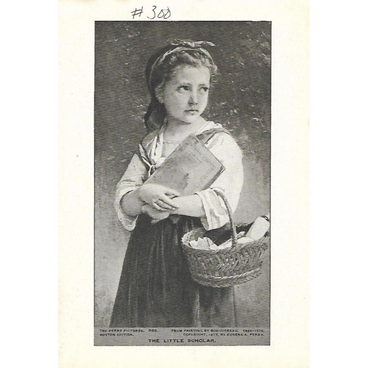 Vintage c.1920’s half-tone print by Perry Pictures, #569 The Little Scholar. From Painting by Bouguereau (1825-1905). Copyright 1913 by Eugene A. Perry 5 1/2" X 8" print size, suitable for framing. *** Information about Perry Pictures - Eugene Ashton Perry, Master of the Center Grammar School of Malden, Massachusetts, discovered the possibility of making and distributing half-tone reproductions of famous paintings, sculptures & architecture to be sold at reasonable prices so that everyone could afford to own art. Â