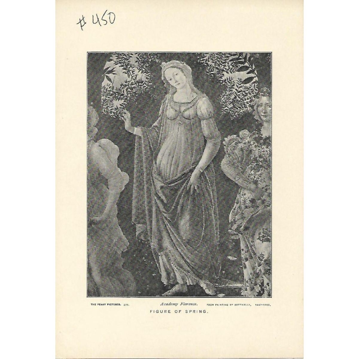 Vintage c1920’s half-tone print by Perry Pictures, #271 Figure of Spring, Academy Florence. From Painting By Botticelli,1447-1515 5 1/2" X 8" print size, suitable for framing. *** Information about Perry Pictures - Eugene Ashton Perry, Master of the Center Grammar School of Malden, Massachusetts, discovered the possibility of making and distributing half-tone reproductions of famous paintings, sculptures & architecture to be sold at reasonable prices so that everyone could afford to own art. Â