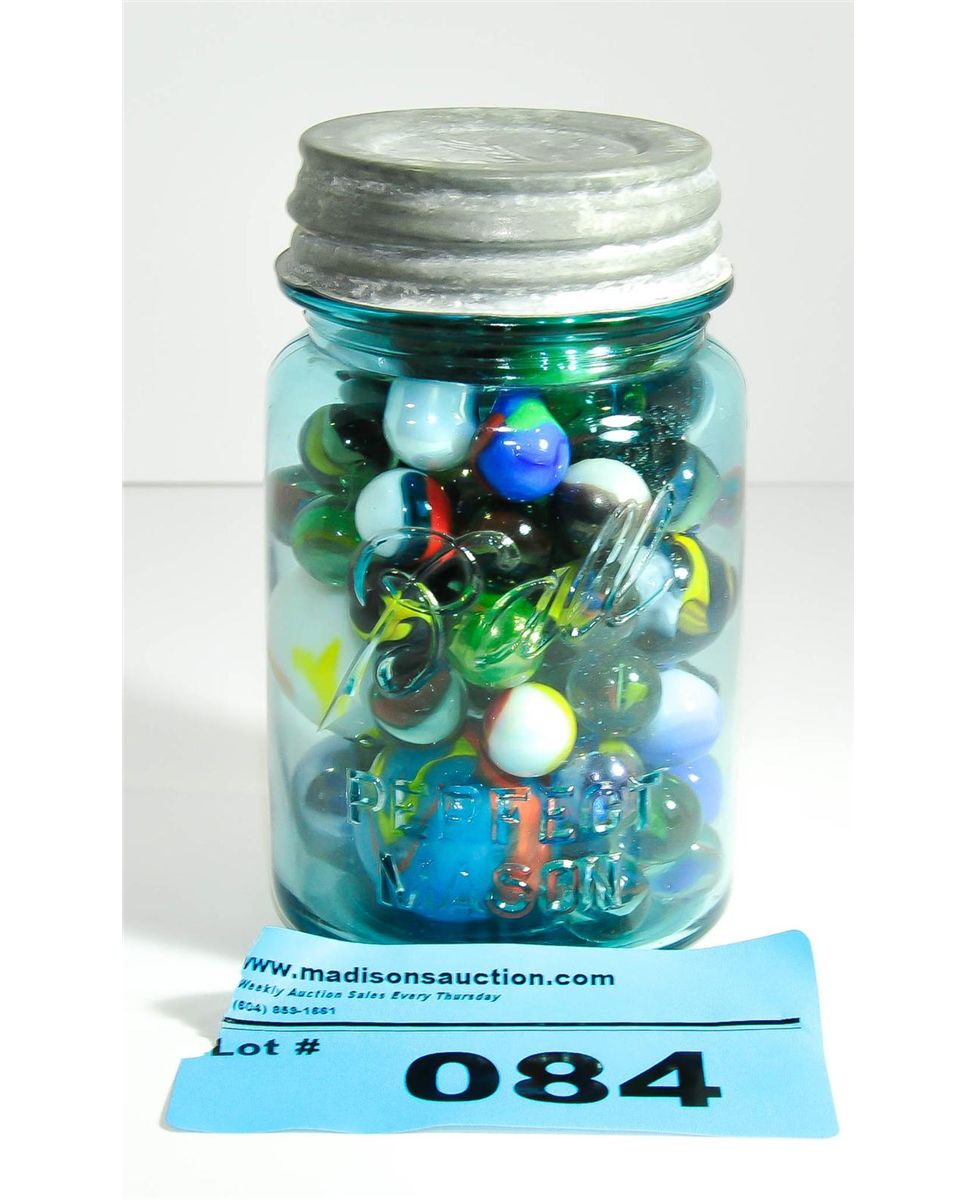 Vintage canning jar filled with marbles