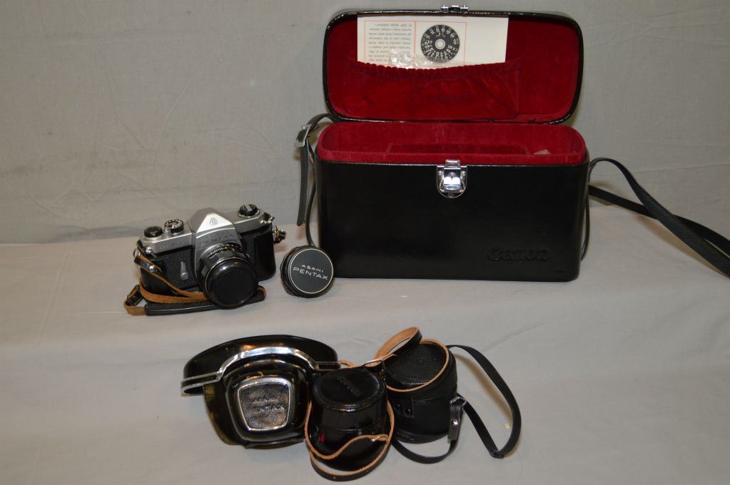 Vintage cased Asahi Pentax Spotamatic camera with extra lenses, instruction books and accessories in hard carrying case