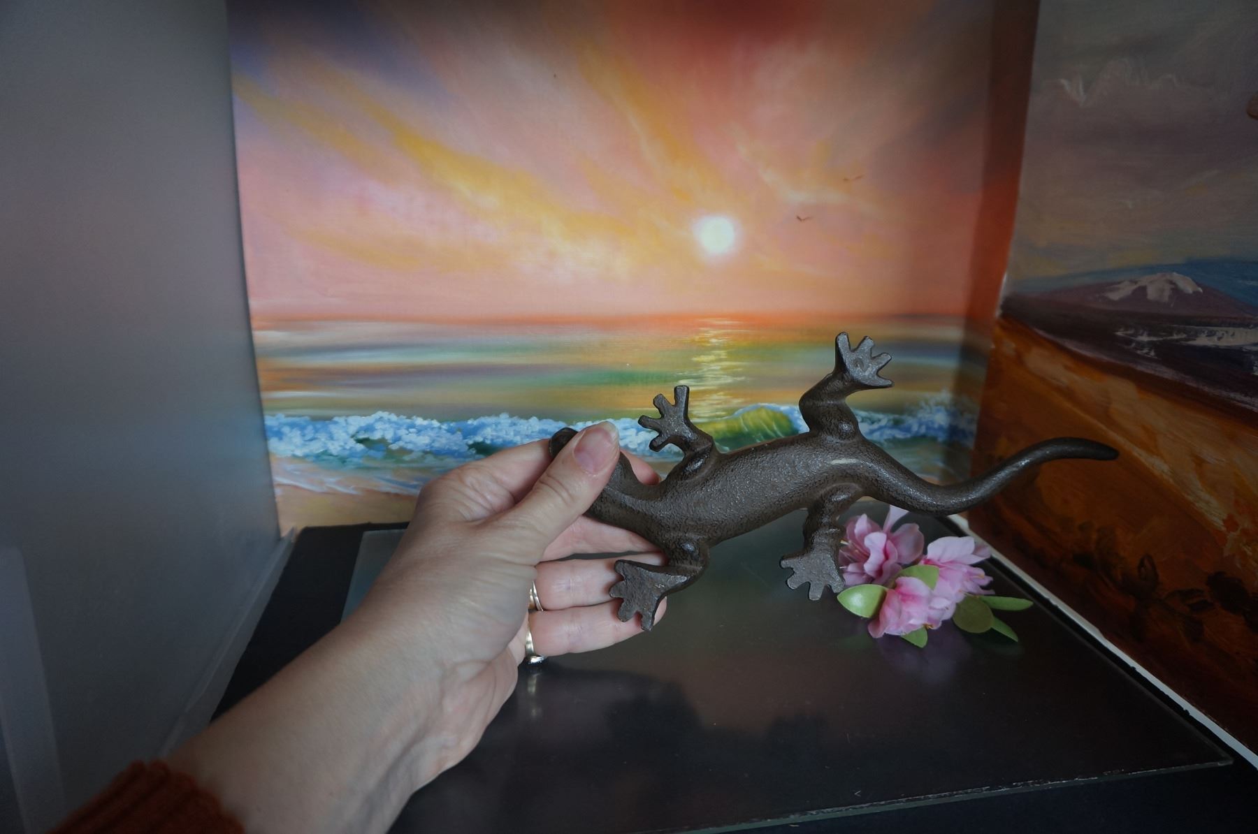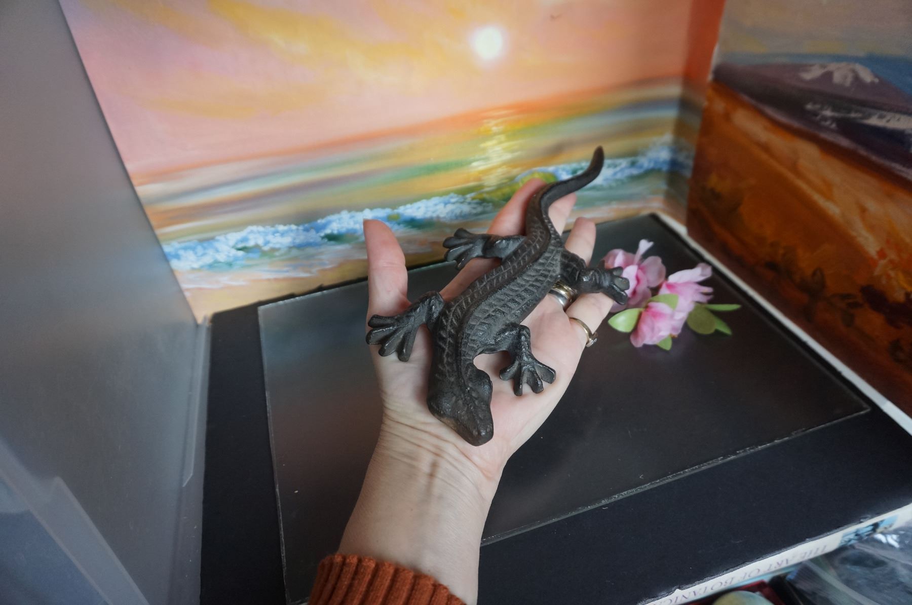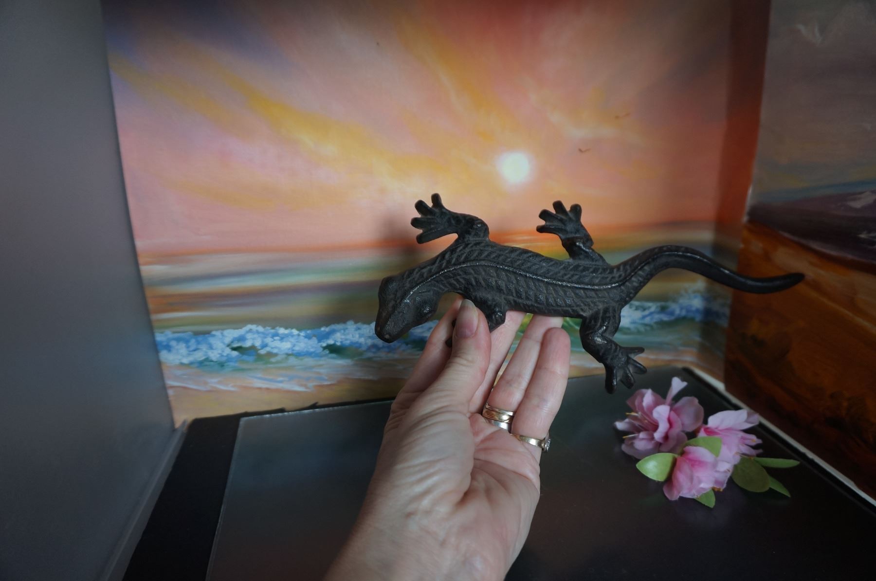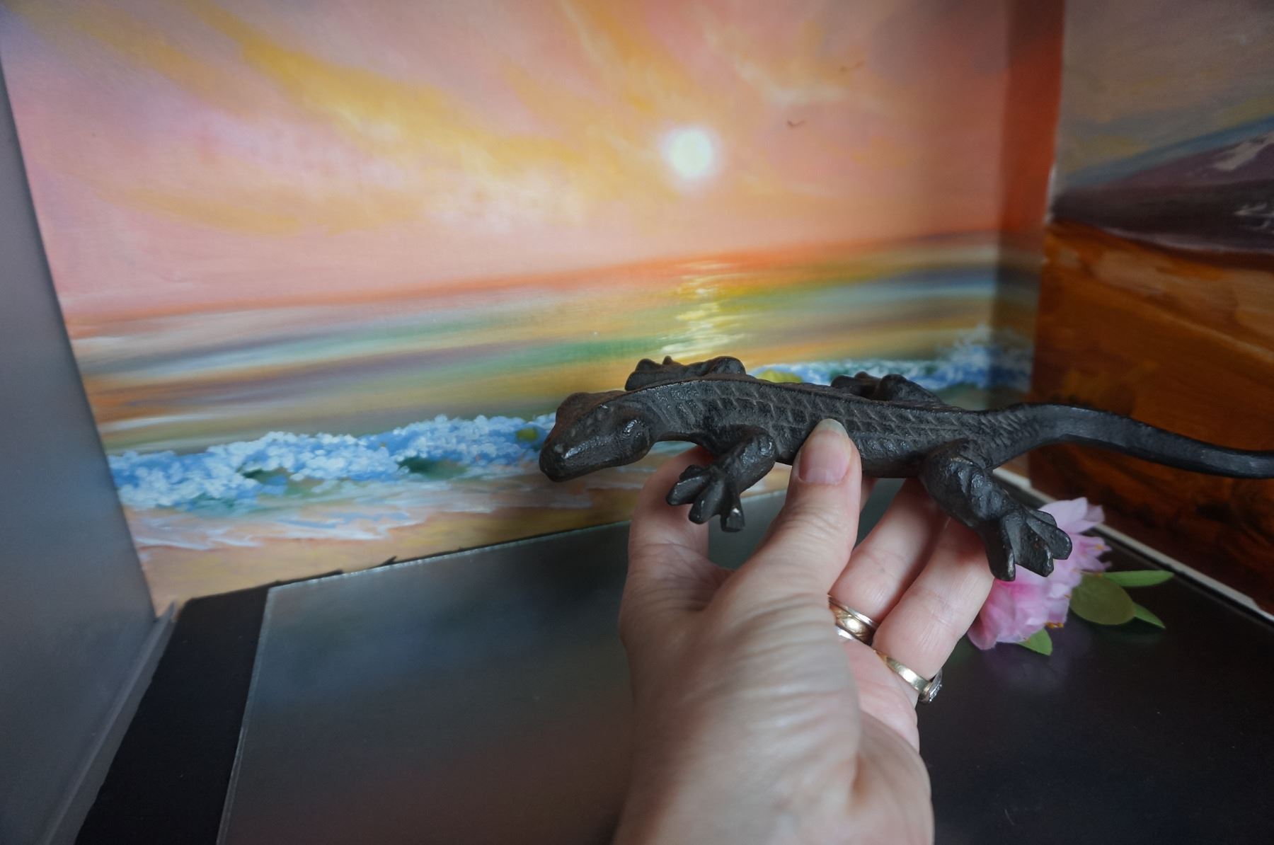 Vintage cast iron large lizard decor