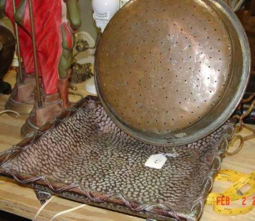 Vintage copper strainer, 19" round & m