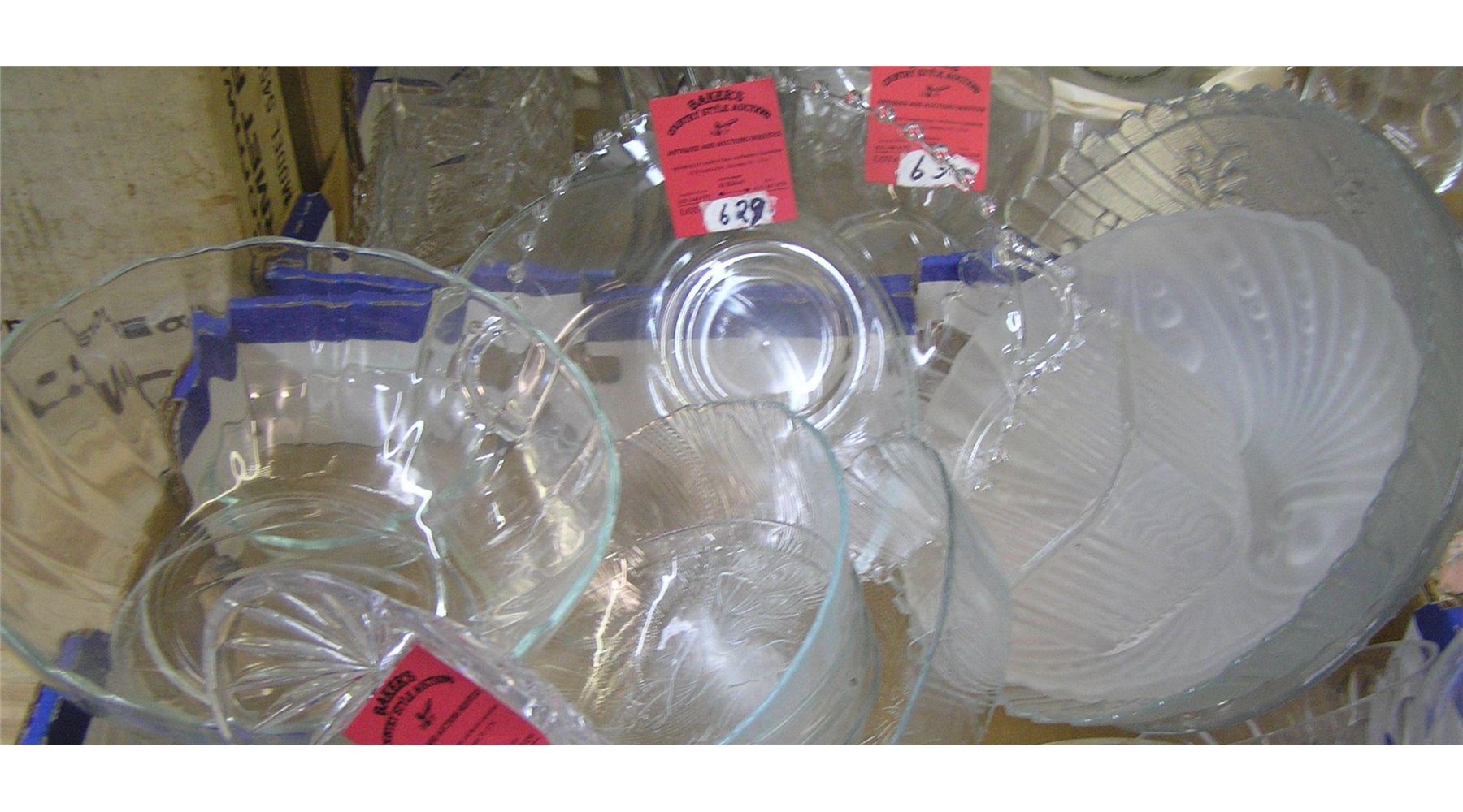 Large box of vintage crystal and glass serving pieces est. value $50.00-$60.00