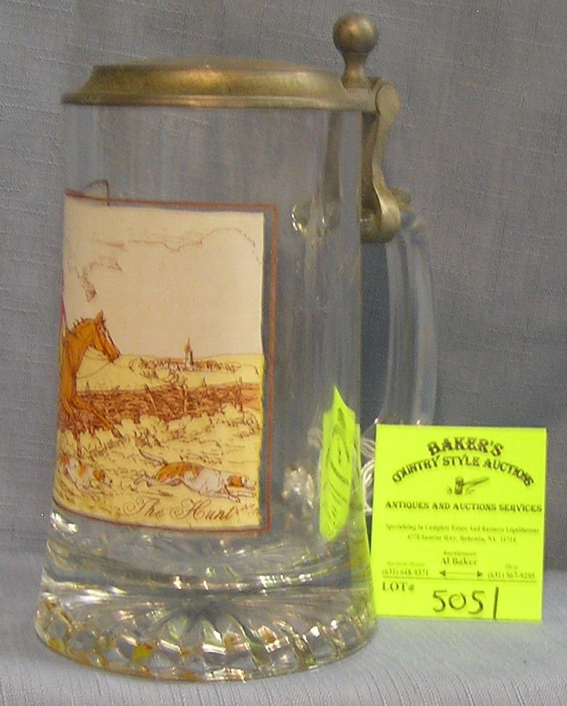 Vintage crystal beer stein with pewter lid featuring hunting scene $75.00-$100.00