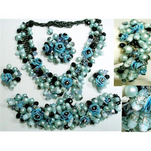 glisten in these dimensional flowers. The VENETIAN glass beads are a real rarity ( made in czech I am sure) and the finishing touch of this master piece!