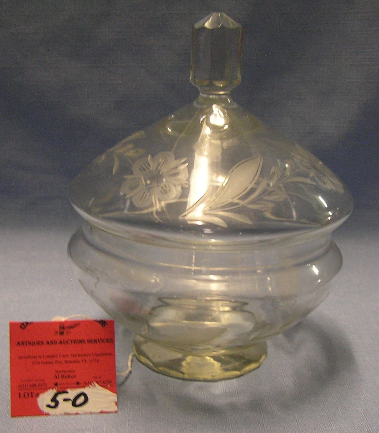 Vintage etched crystal candy jar est. value $40.00-$50.00
