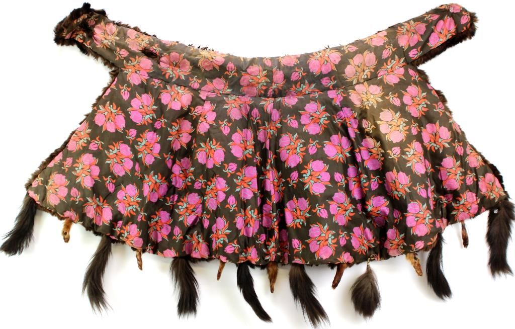 Vintage furs cape, cloth lined showing light loss with original buttons intact.